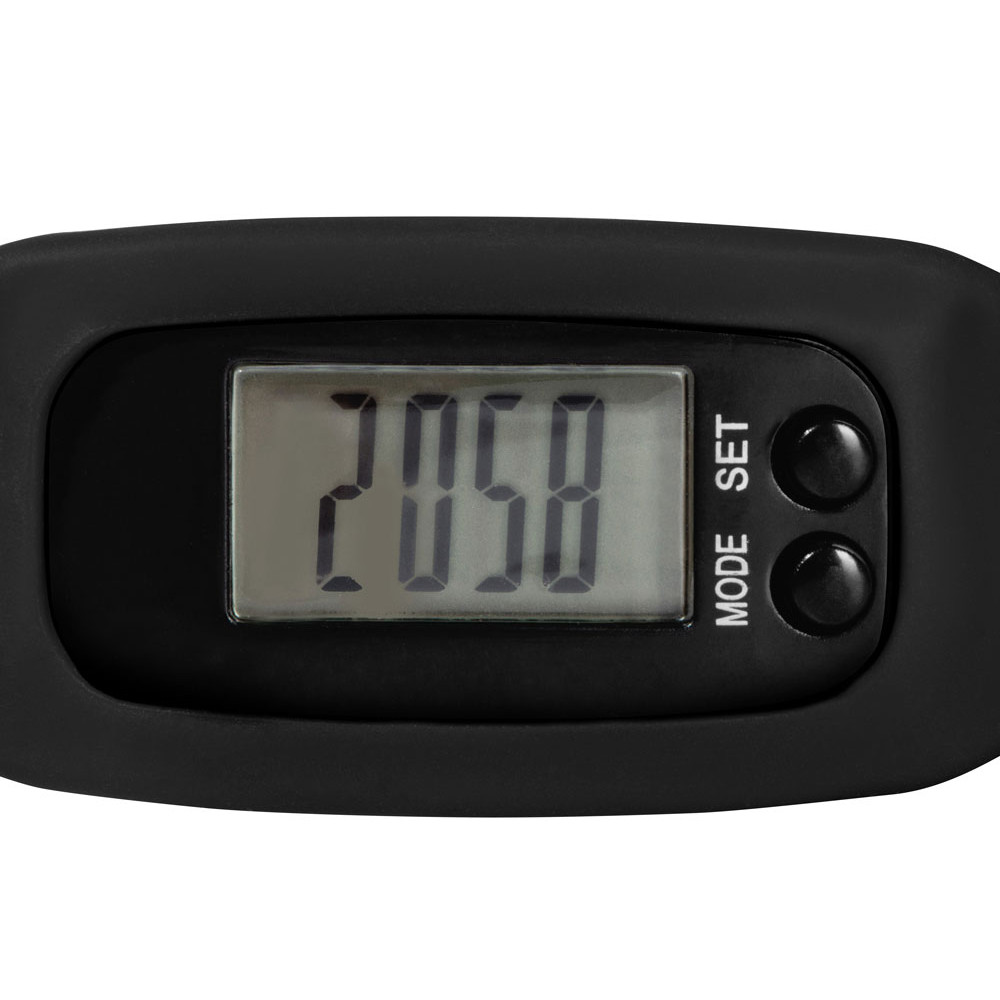 Наручные часы с возможностью отображения времени, калорий, шагов и дистанции. Есть переключение между метрической и британской системами измерений. На силиконовом ремешке можно сделать гравировку. Часы упакованы в пластиковую коробку, которую можно использовать для нанесения. Батарейка в комплекте.