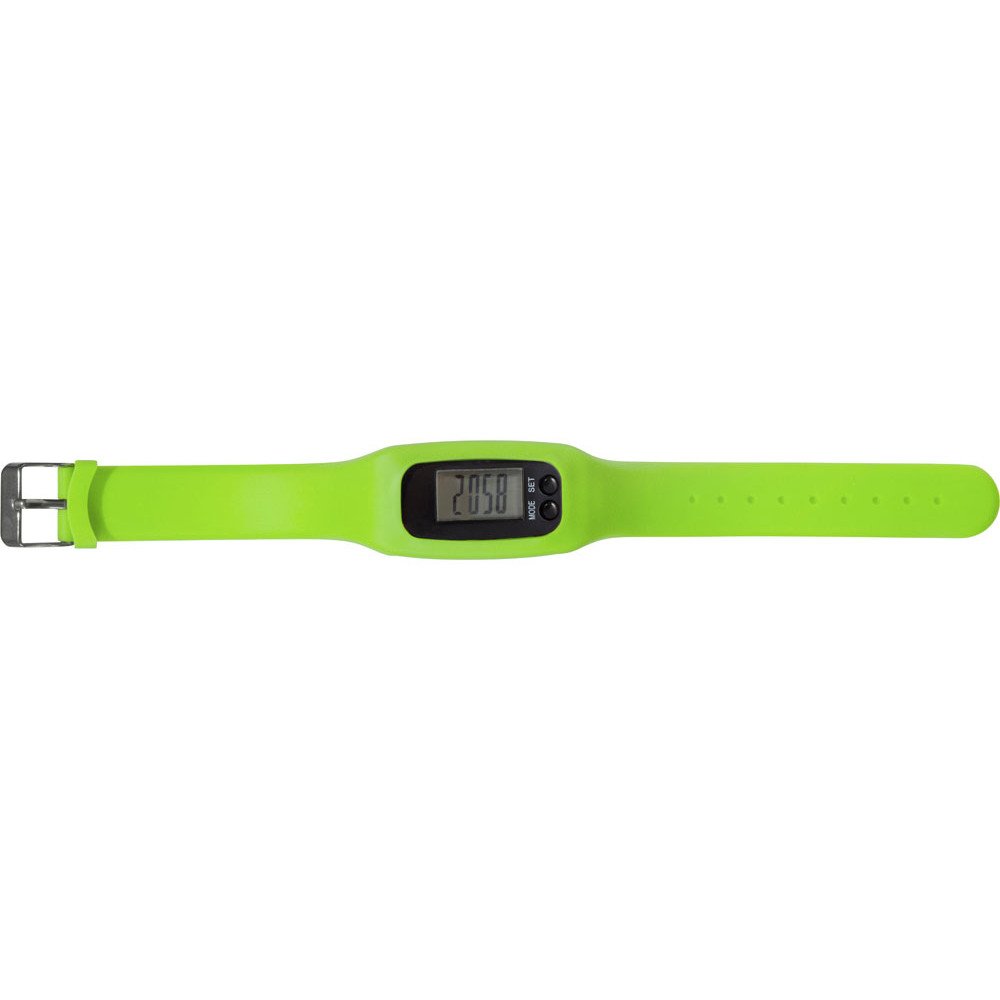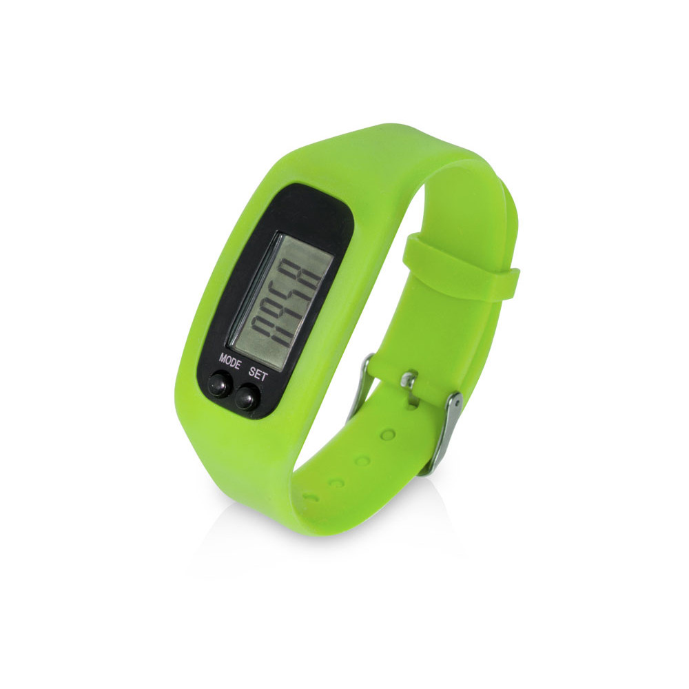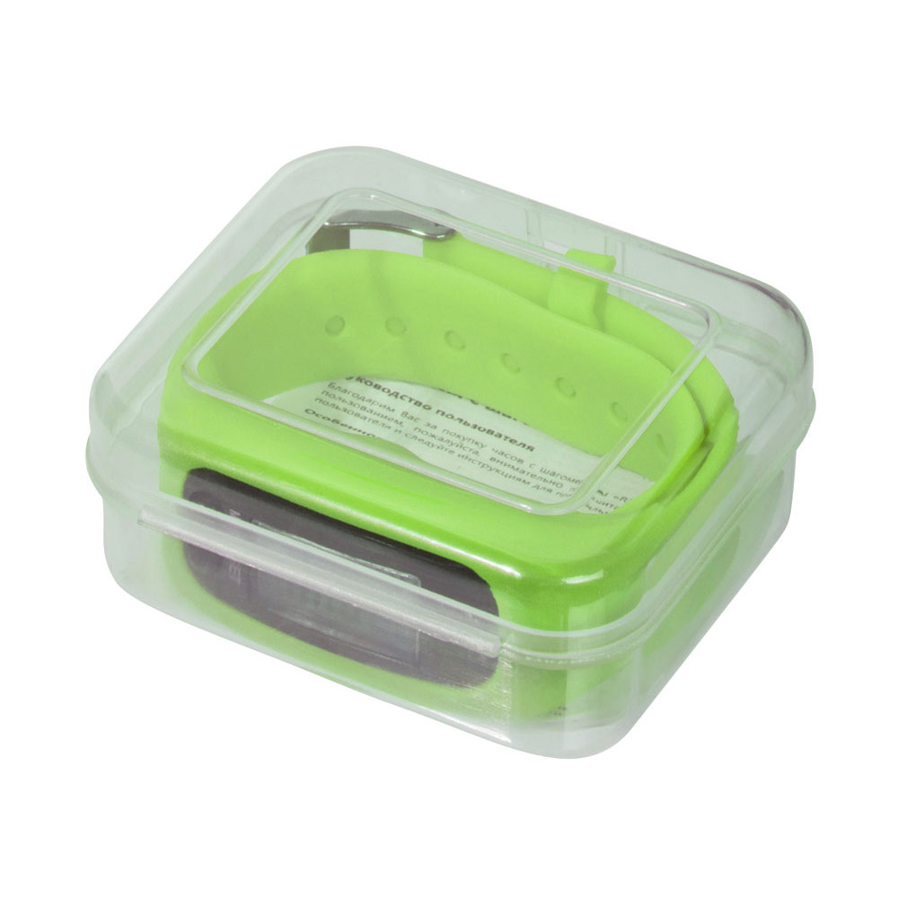 Наручные часы с возможностью отображения времени, калорий, шагов и дистанции. Есть переключение между метрической и британской системами измерений. На силиконовом ремешке можно сделать гравировку. Часы упакованы в пластиковую коробку, которую можно использовать для нанесения. Батарейка в комплекте.