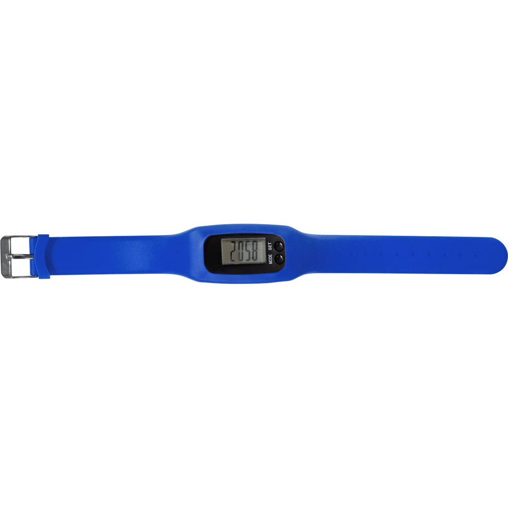 Наручные часы с возможностью отображения времени, калорий, шагов и дистанции. Есть переключение между метрической и британской системами измерений. На силиконовом ремешке можно сделать гравировку. Часы упакованы в пластиковую коробку, которую можно использовать для нанесения. Батарейка в комплекте.