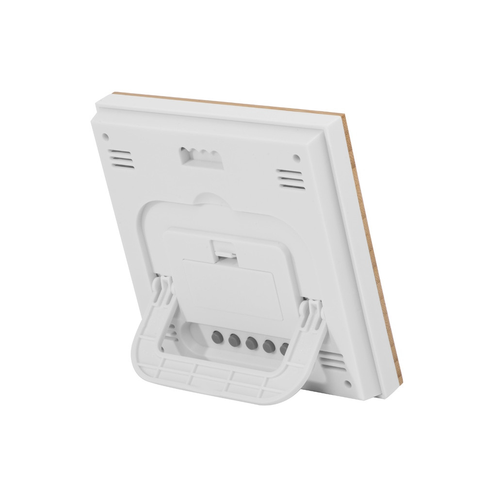 Благодаря встроенным датчикам метеостанция показывает температуру воздуха, уровень влажности, дату и время.
