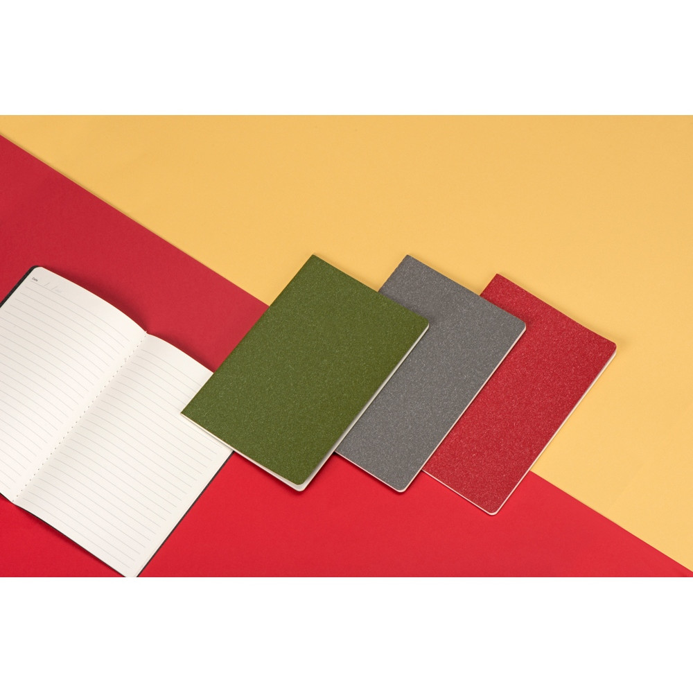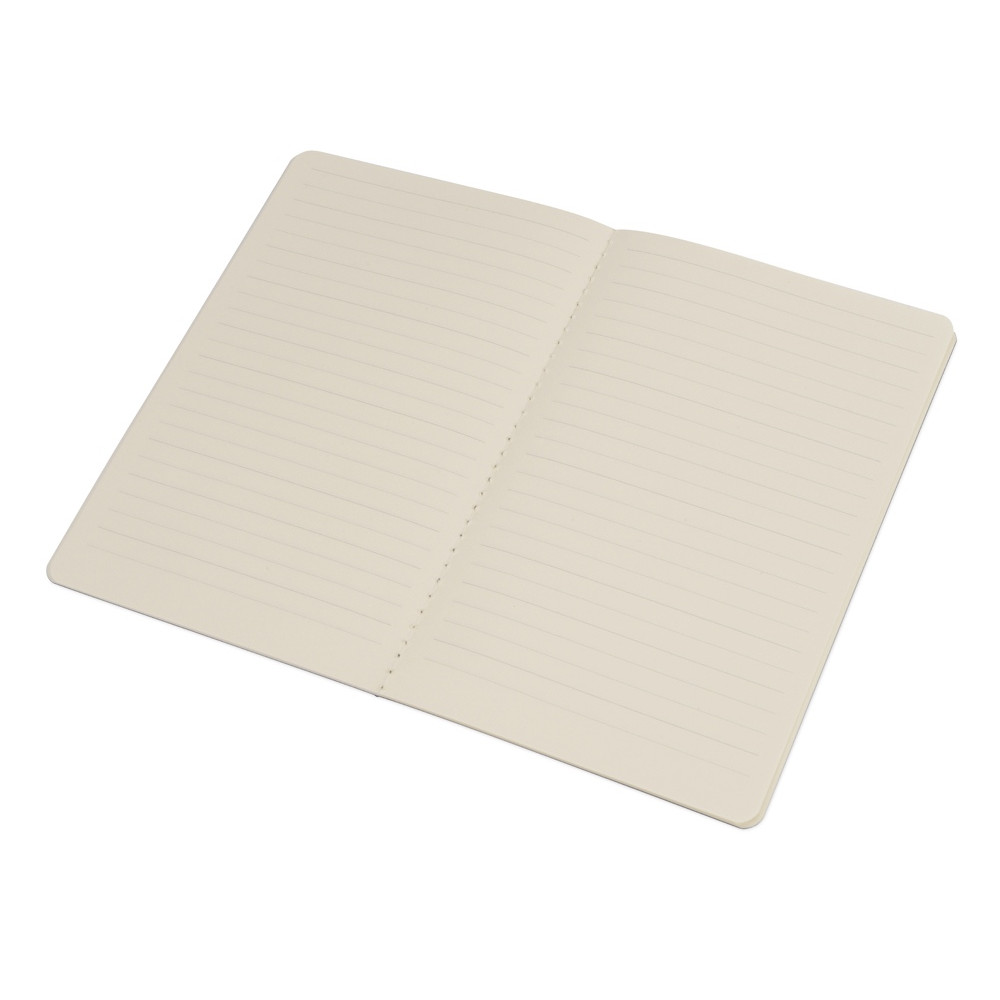 Универсальный блокнот в трендовых оттенках. Обложка матового цвета с эффектом меланж. Прошитый нитками блок на 60 линованных страниц.
