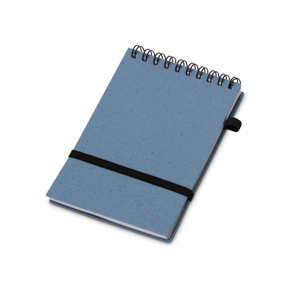 Блокнот с обложкой из переработанной пшеницы и пластика. Блок состоит из 60 листов переработанной бумаги белого цвета. Крепление - пружина. В комплекте шариковая ручка из пшеничной соломы.