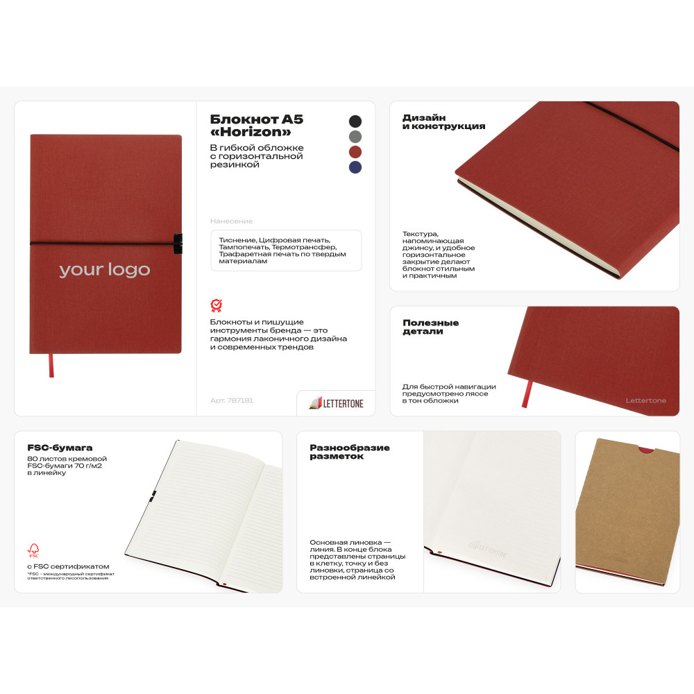 Horizon от Lettertone — блокнот с удобной гибкой обложкой, закрывающейся на горизонтальную резинку. Обложка имеет текстуру, напоминающую джинсу.