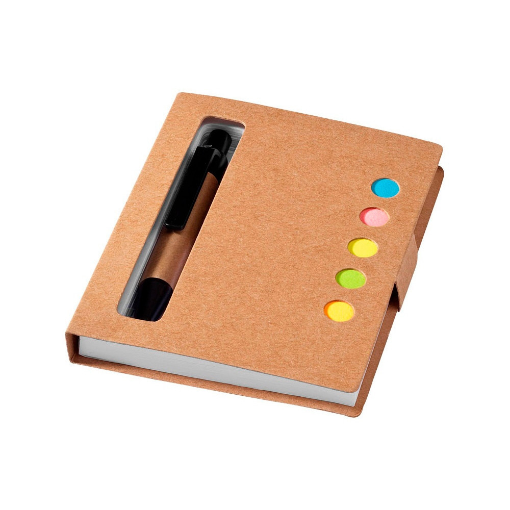 Набор цветных стикеров с шариковой ручкой и блоком из 80 белых отрывных листков. Очень удобный и функциональный аксессуар для офиса, а также отличный промо-сувенир. На обложку из уплотненного картона возможно нанесение логотипа вашей компании.
