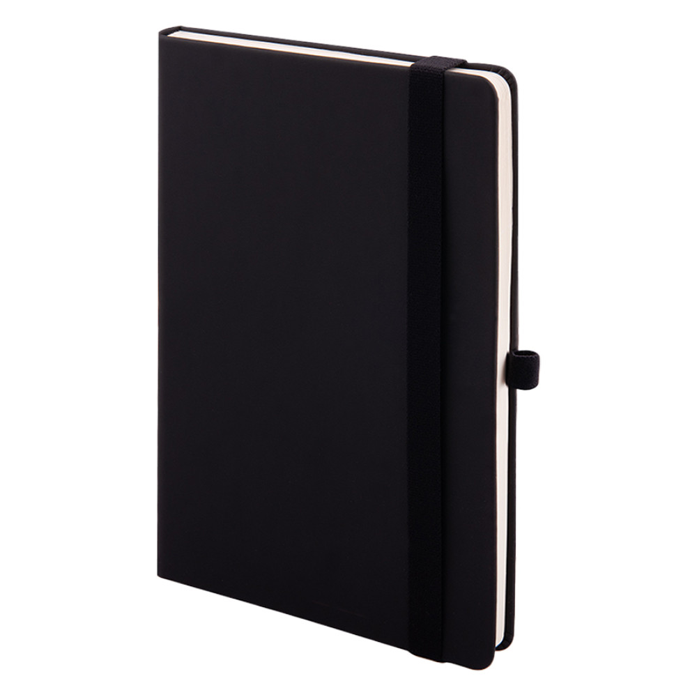 Самый популярный блокнот в твердой обложке, с эластичной резинкой, пенхолдером и ляссе в тон.Термоактивный классический PU материал Silk PlusЦвет обложки, близкий к Pantone Black CВнутренний блок 256 страниц в линейкуИдеально скругленные углы блокаПерфорированные 8 последних листовКремовая FSC бумага 70г м2Карман для мелочейИндивидуальная упаковка: прозрачный сливбокс
