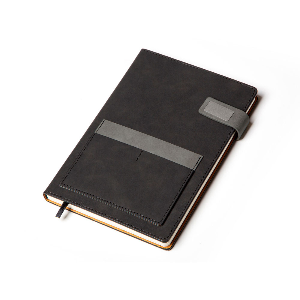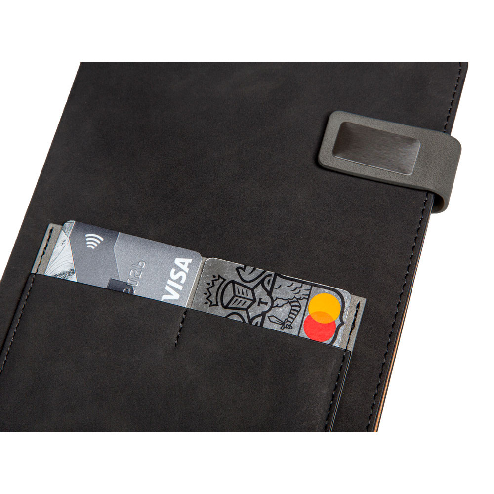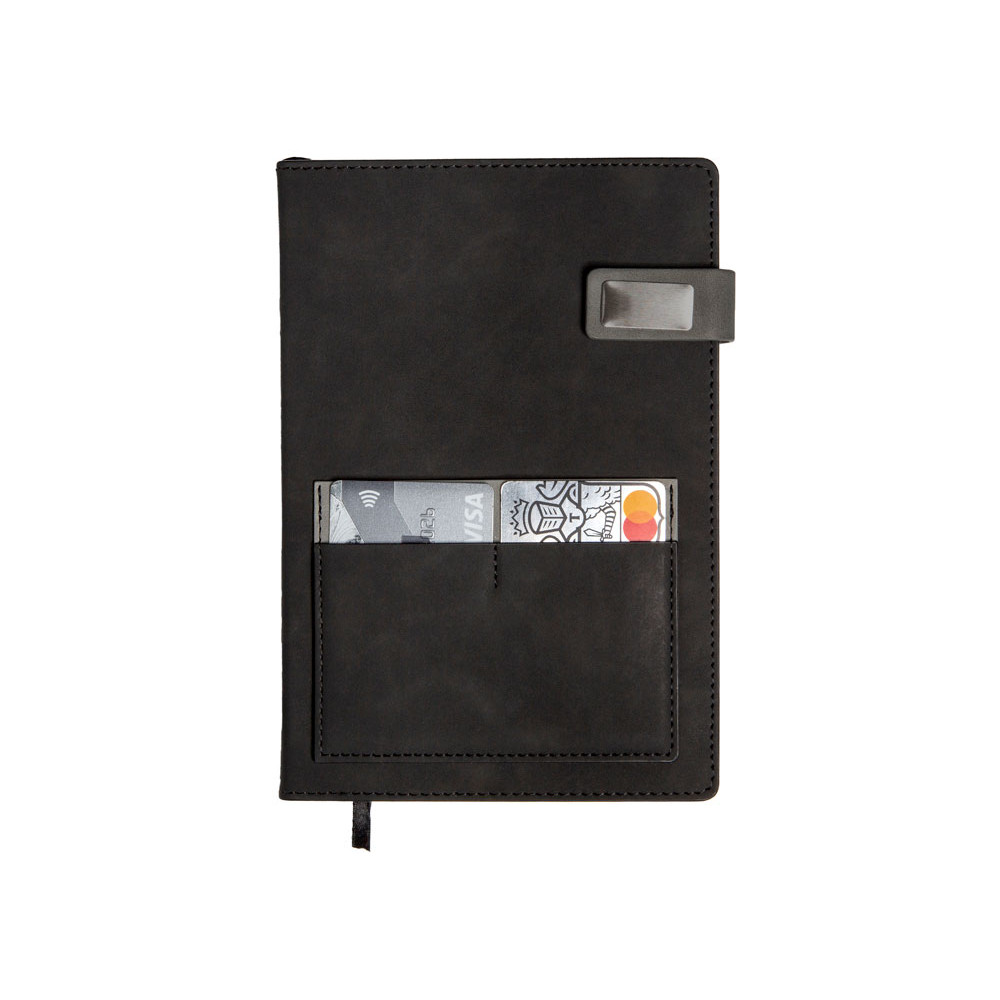 Бизнес блокнот А5 Freya с клапаном и карманом для визиток, твердая обложка, 128 листов, черный и свет