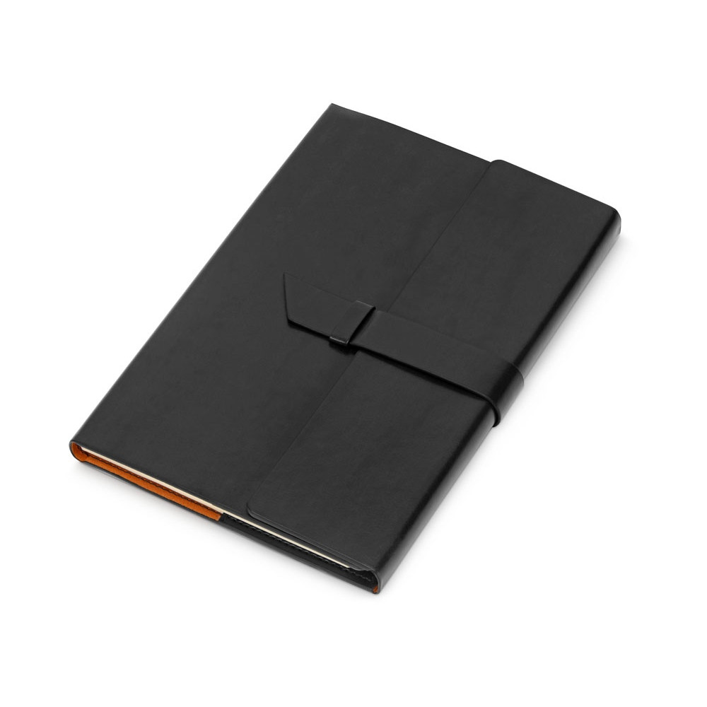 Бизнес-блокнот формата А5 в твердой обложке из искусственной кожи станет отличным подарком для любого клиента. Блокнот состоит из обложки с клапаном и сменного блока с линованными страницами. Внутри обложки есть петля для ручки в тон (ручка в комплект не входит).