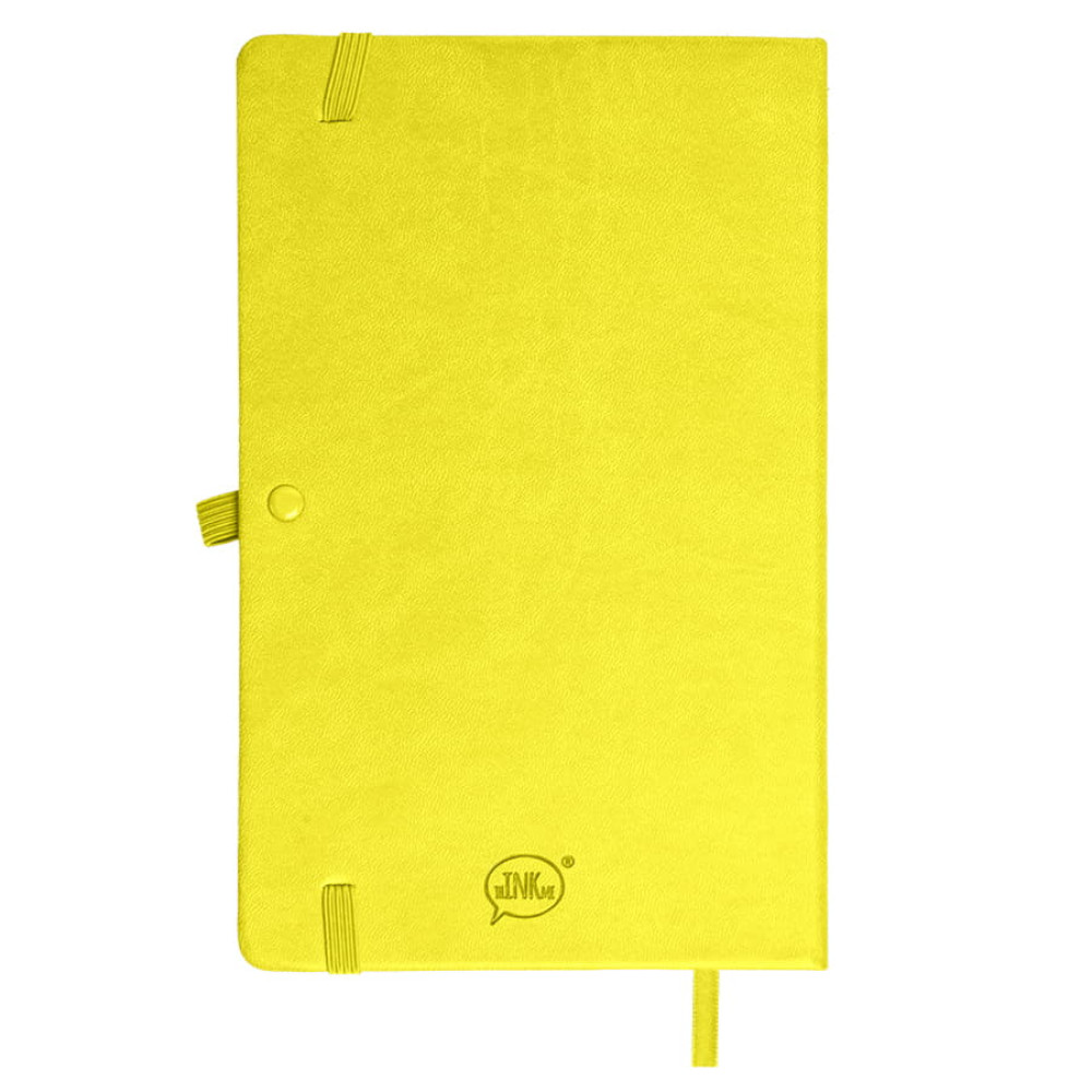 Cамый популярный блокнот в твердой обложке, с эластичной резинкой, пенхолдером и ляссе в тон. Термоактивный классический PU материал Velvet Цвет обложки, близкий к Pantone 109C Внутренний блок 256 страниц в линейку Идеально скругленные углы блока Перфорированные 8 последних листов Кремовая FSC бумага 70г м2 Карман для мелочей Индивидуальная упаковка: фирменный сливбокс thINKme