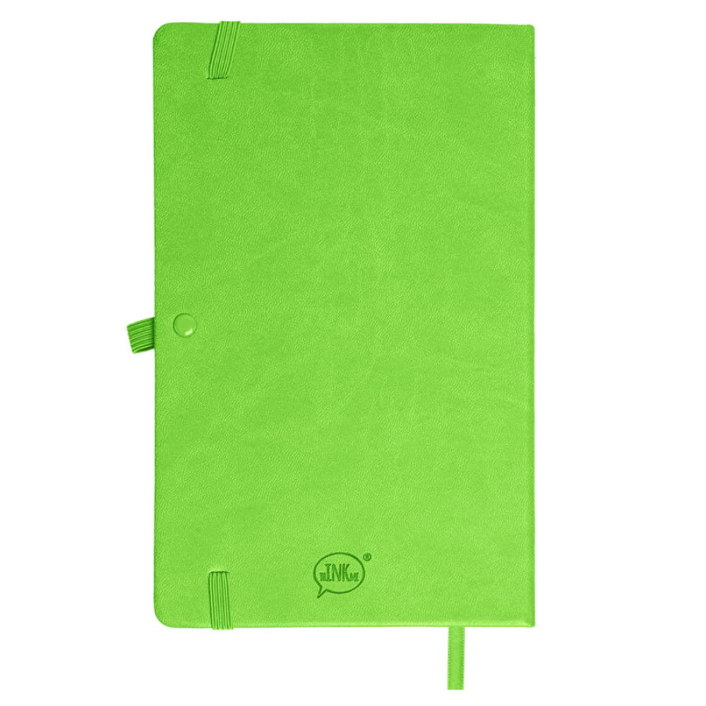 Самый популярный блокнот в твердой обложке, с эластичной резинкой, пенхолдером и ляссе в тон. Термоактивный классический PU материал Velvet Цвет обложки, близкий к Pantone 362C Внутренний блок 256 страниц в линейку Идеально скругленные углы блока Перфорированные 8 последних листов Кремовая FSC бумага 70г м2 Карман для мелочей Индивидуальная упаковка: фирменный сливбокс thINKme