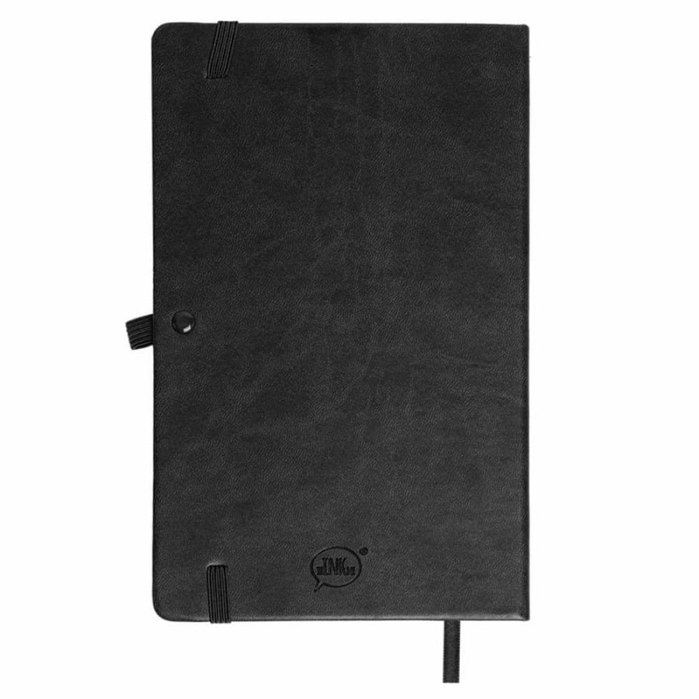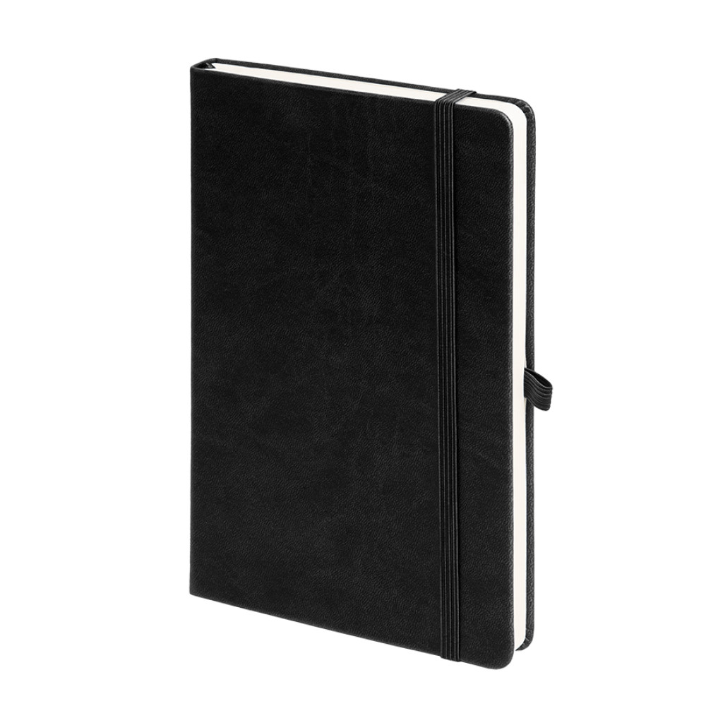 Самый популярный блокнот в твердой обложке, с эластичной резинкой, пенхолдером и ляссе в тон. Термоактивный классический PU материал Velvet Цвет обложки, близкий к Pantone Black C Внутренний блок 256 страниц в линейку Идеально скругленные углы блока Перфорированные 8 последних листов Кремовая FSC бумага 70г м2 Карман для мелочей Индивидуальная упаковка: фирменный сливбокс thINKme