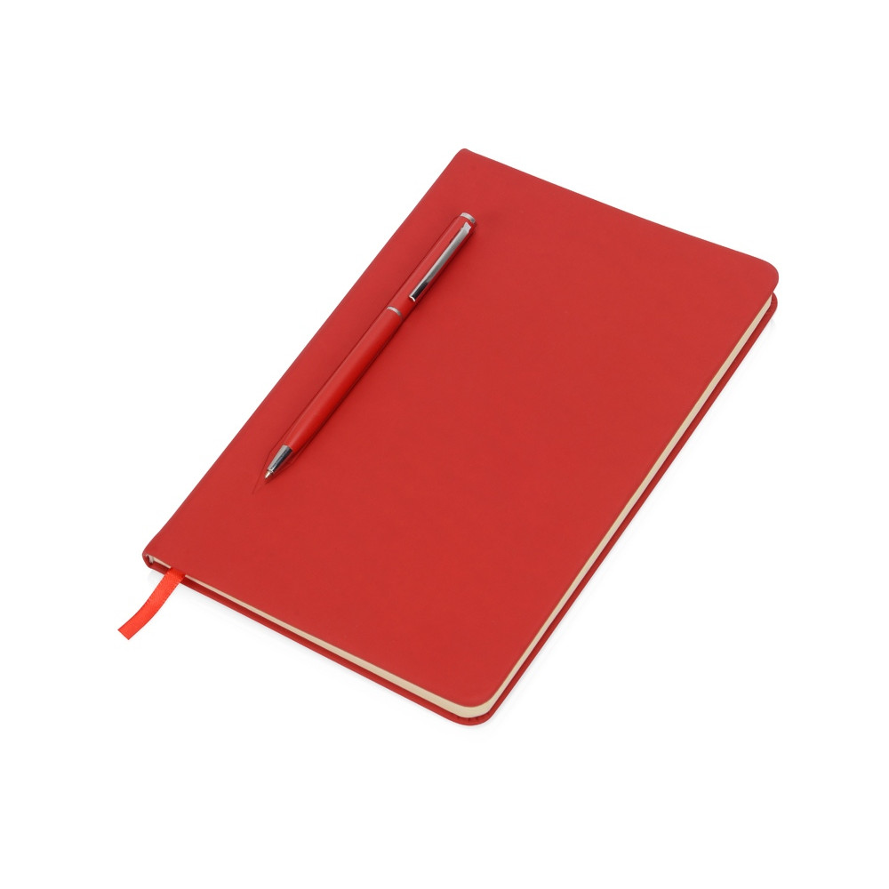 Блокнот формата А5 в твердой обложке со скруглёнными углами и блоком в линейку на 80 листов. Благодаря скрытой магнитной ленте на блокноте можно легко и надежно закрепить металлическую ручку. Зона с магнитом обозначена тиснением в форме ручки.