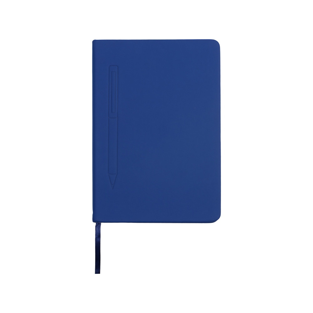 Блокнот формата А5 в твердой обложке со скруглёнными углами и блоком в линейку на 80 листов. Благодаря скрытой магнитной ленте на блокноте можно легко и надежно закрепить металлическую ручку. Зона с магнитом обозначена тиснением в форме ручки.