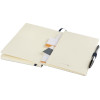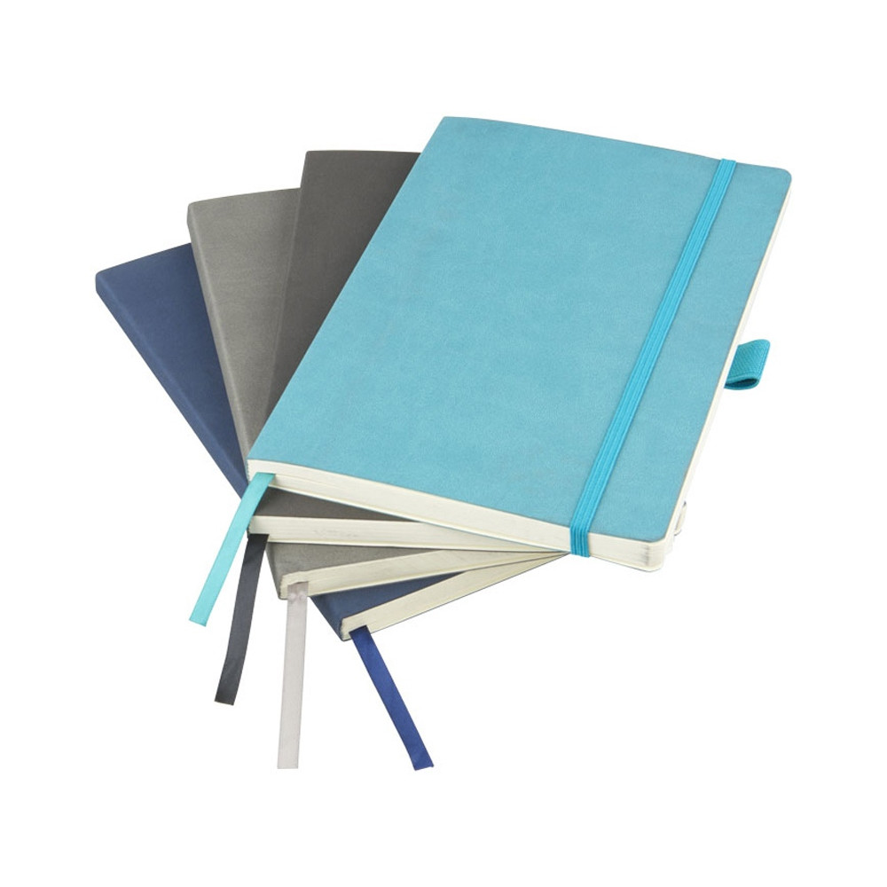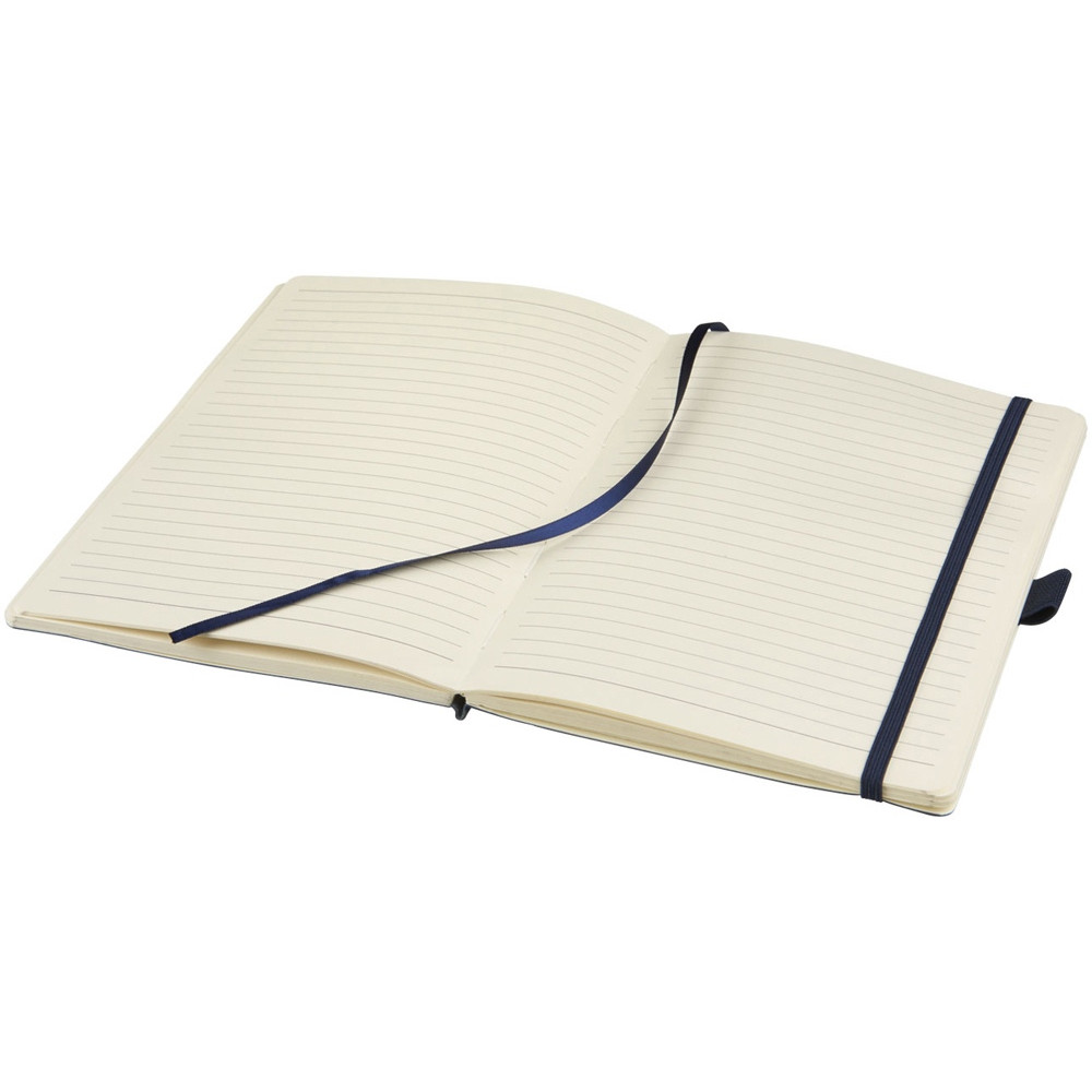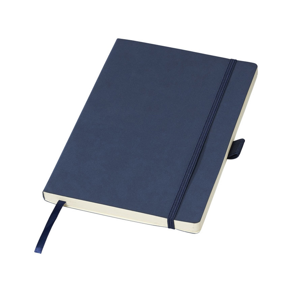 Блокнот Revello. Мягкий на ощупь, гибкий блокнот (размер А5 для ориентации) со встроенной эластичной застежкой, закладкой, петелькой для ручки и кармашка для документов на внутреннем форзаце сзади. 80 листов кремовой линованной бумаги (80г/м2). Упакован в черную коробку-рукав. Кожа ПУ.