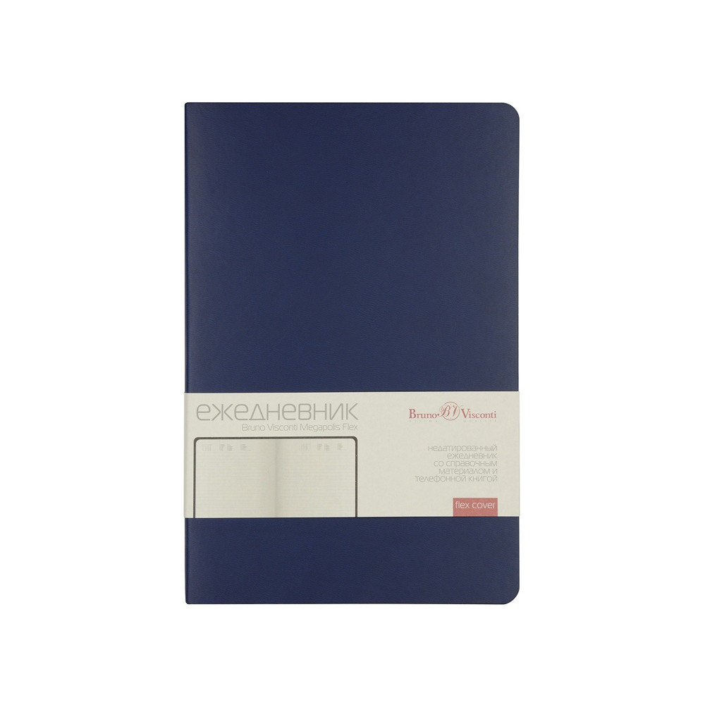 Недатированный ежедневник Megapolis Flex от бренда Bruno Visconti - это качественный корпоративный подарок по выгодной цене, произведенный специально под персонализацию. Представлен в универсальном формате А5 и состоит из 272 страниц. Элегантная закругленная flex обложка из гладкого кожзама имеет гибкую конструкцию и приятна на ощупь. А интегральный переплет позволяет сэкономить место в деловой сумке или портфеле – ежедневник можно просто свернуть в трубку или согнуть пополам.