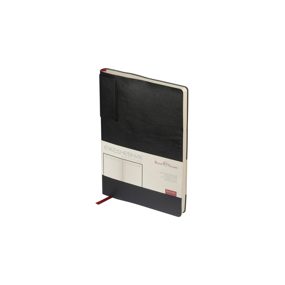 Лаконичная модель в ярком исполнении: гибкая обложка черного цвета с контрастной или в цвет обложки нашивкой. Выполнен из качественной и прочной искусственной кожи, крепление внутреннего блока - книжный переплет, закладка- ляссе. Углы обложки скруглены.