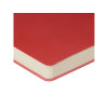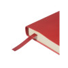 Лаконичная модель в ярком исполнении: гибкая обложка красного цвета с контрастной или в цвет обложки нашивкой. Выполнен из качественной и прочной искусственной кожи, крепление внутреннего блока - книжный переплет, закладка- ляссе. Углы обложки скруглены.