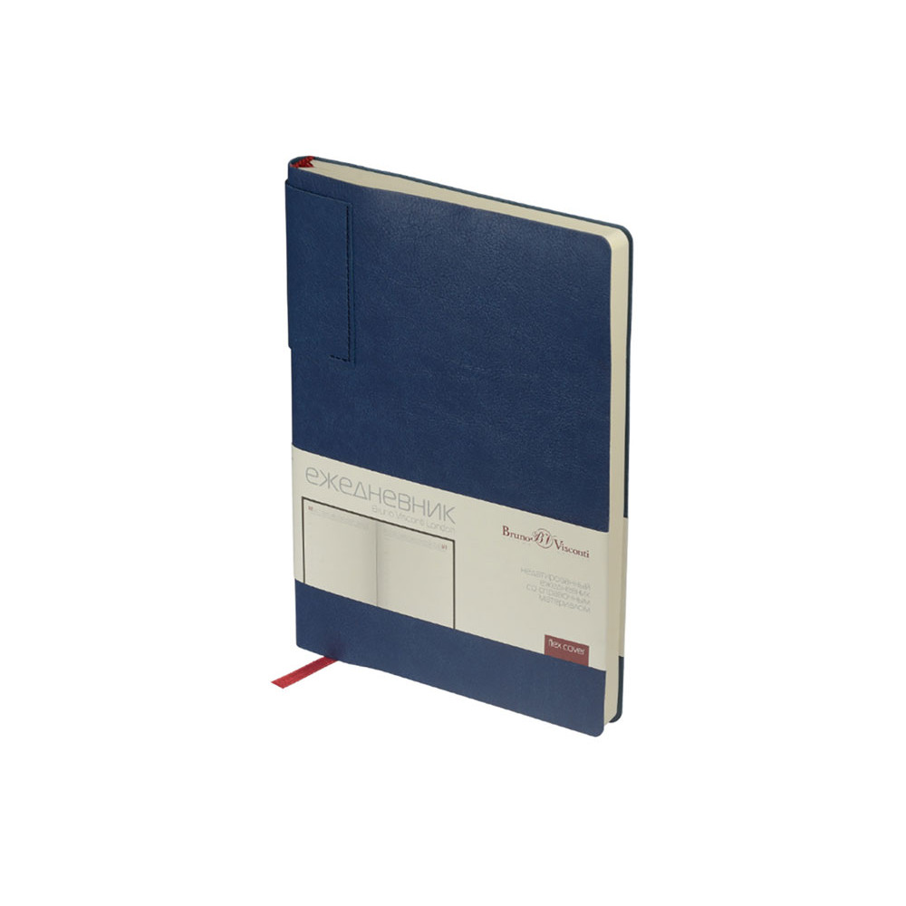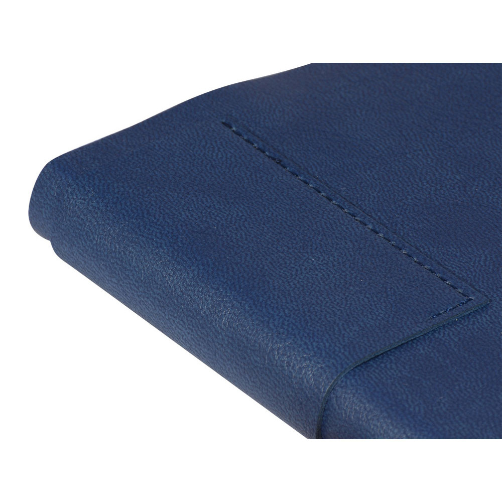 Лаконичная модель в ярком исполнении: гибкая обложка синего цвета с контрастной или в цвет обложки нашивкой. Выполнен из качественной и прочной искусственной кожи, крепление внутреннего блока - книжный переплет, закладка- ляссе. Углы обложки скруглены.