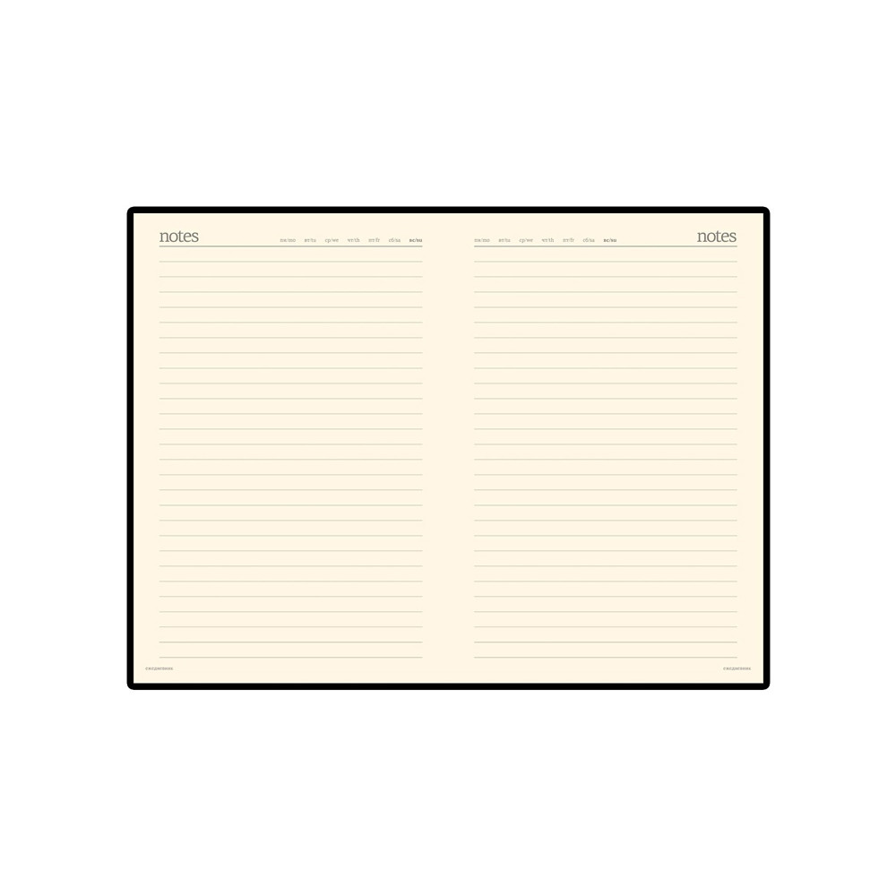 Строгий офисный дизайн, классический долговечный переплетный материал с гладкой фактурой - безусловные преимущества этих корпоративных моделей. Черная обложка с закругленными уголками станет отличной основой для Вашего фирменного логотипа. Недатированный ежедневник выпускается в формате А6, что соответствует размерам 87*131. Блок включает 200 страниц из бежевой высококачественной бумаги плотностью 70 грамм. Первые 8 листов отведены под справочную информацию. Восемь последних листов снабжены микроперфорацией, гарантирующей аккуратную линию отрыва. Под обложкой расположена шелковая закладка-ляссе.