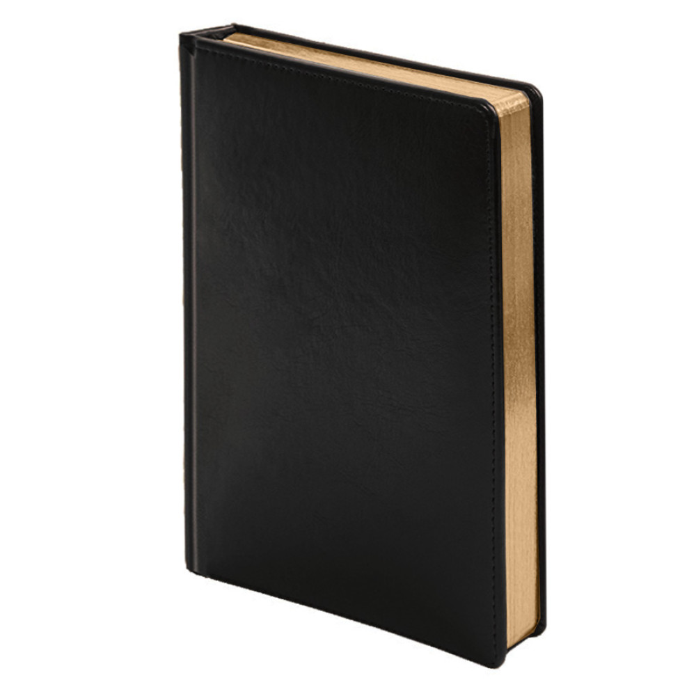 Цвет обложки, близкий к пантону Black C Размер 145*205 мм Переплет твердый, прошивка по периметру обложки Обложка PU Nebraska Блок недатированный, в линейку, скругленные углы Обрез золотой Бумага белая, плотность 70 г м2 Форзац нахзац серые 272 страницы Каптал и ляссе в цвет обложки Упаковка прозрачный полибэгВ данный момент происходит смена справочной части блока. Внешний вид изделия остается без изменений.