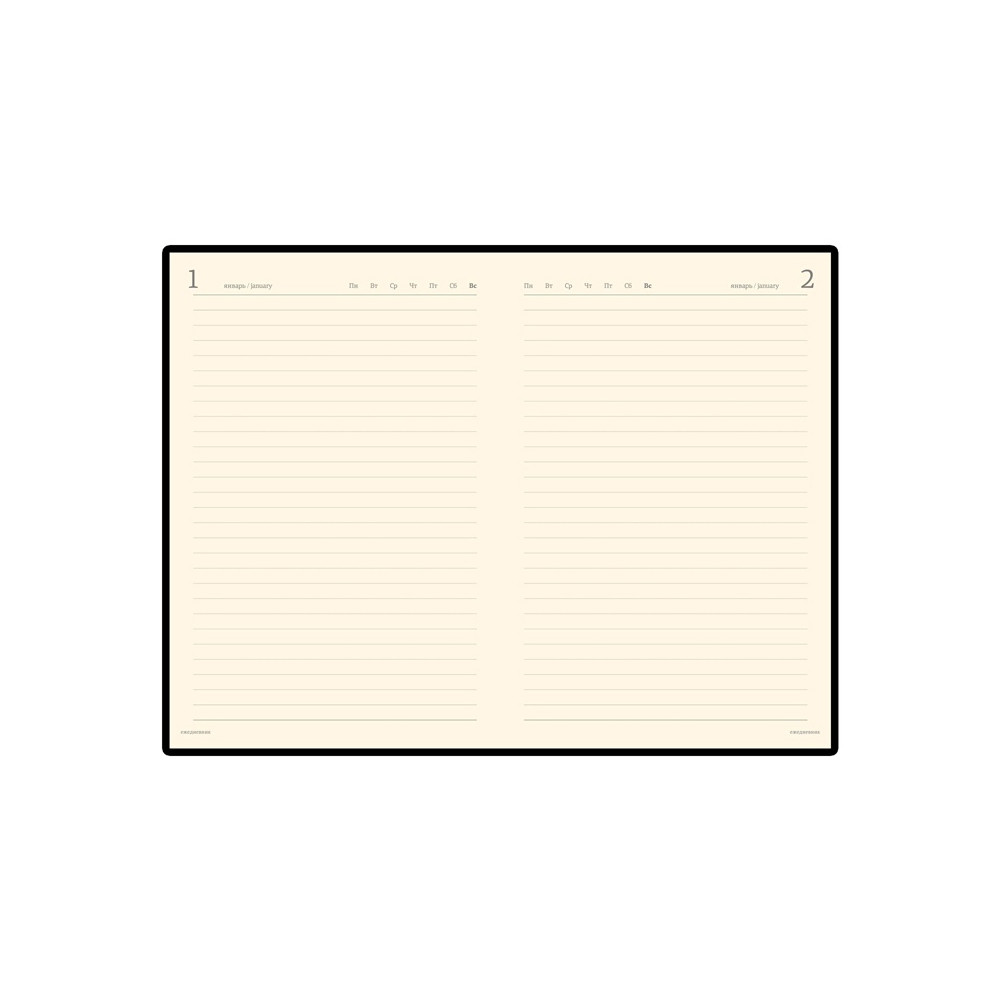 Ежедневник формата А5 выпускается размером 143*216 мм. Полудатированный сменный блок включает 416 страниц бежевого цвета.