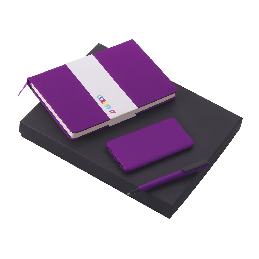 Подарочный набор c блокнотом С2, ручкой и повербанком 5000 mAh, фиолетовый