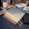 Бизнес-блокнот AURI в бронзовом исполнении — сочетание современного делового стиля и премиального дизайна. Мягкий переплёт из нетермоактивного PU‑материала приятен на ощупь и визуально напоминает слиток благородного металла. Бронзовый обрез страниц подчеркивает минималистичный образ, превращая рабочий инструмент в статусный аксессуар.Основные характеристики:Формат: 145×205 ммПереплёт: мягкий, из нетермоактивного PU‑материалаОбрез: бронзовый, матовыйБлок: 256 страниц, кремовая эвкалиптовая бумага, плотность 70 г м²Разлиновка: клеткаУглы: скруглённыеЛяссе: ширина 7 ммДополнительно: перфорация на последних страницахУпаковка: черный сливбокс из переработанного картона+ бумагаВнутренний блок обеспечивает комфортное письмо и приятный визуальный контраст с бронзовой обложкой. Упаковка защищает изделие при транспортировке и подчёркивает ответственное отношение к экологии.