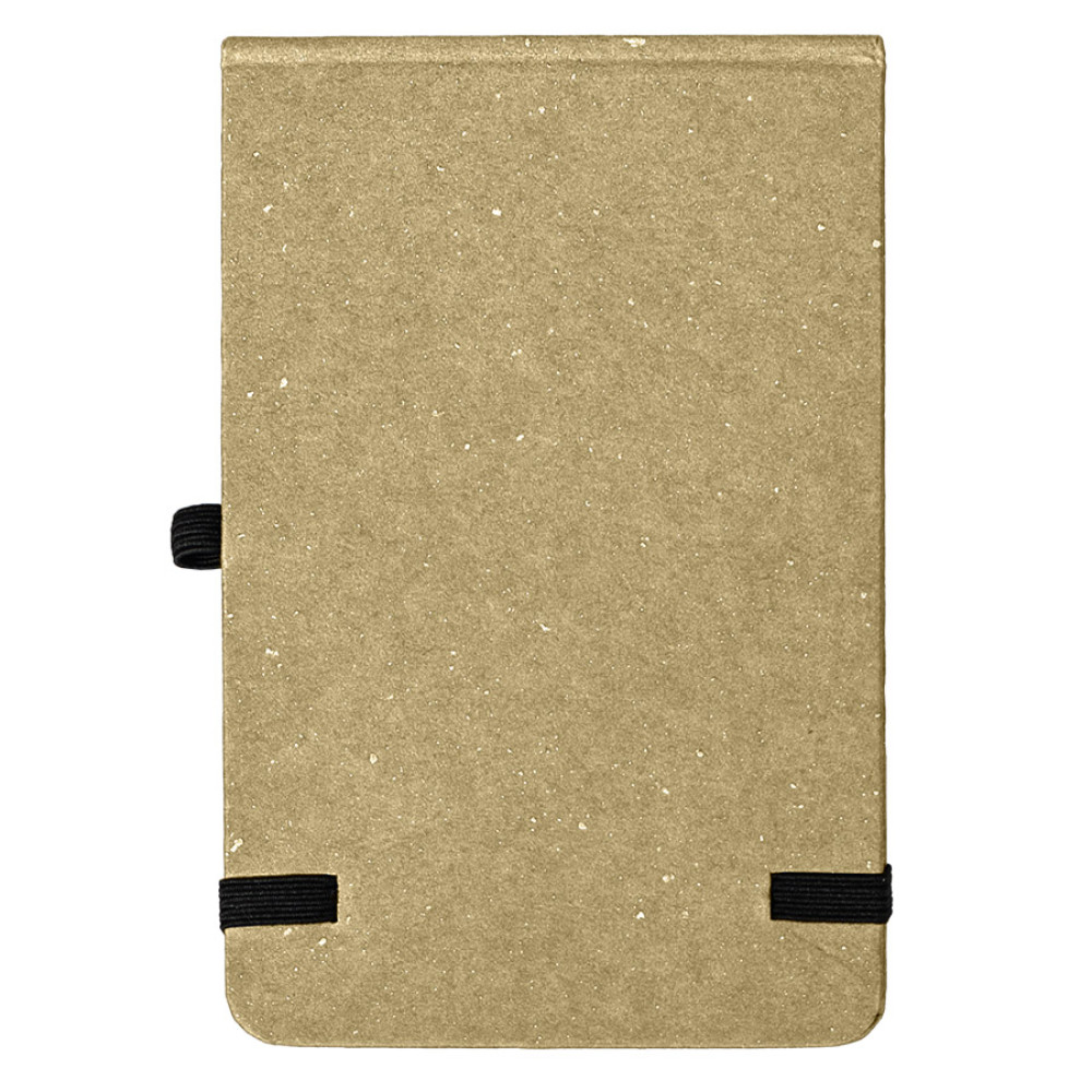 Блокнот MEMO с отрывными листами, размер 90*140 мм, обложка - переработанный картон, 64 листа из FSC кремовой бумаги, 70 г м2, резинка-пенхолдер и резинка для фиксации. Ручка в комплект не входит.
