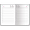Переплет блока книжный. Цвет страниц белый с двухцветной печатью. Есть страница для личных данных, 16 страниц справочной информации, 19 страниц телефонного справочника и календарь на 2026-2027 года. Стандартный размер блока А5 (140 Х 200 мм).