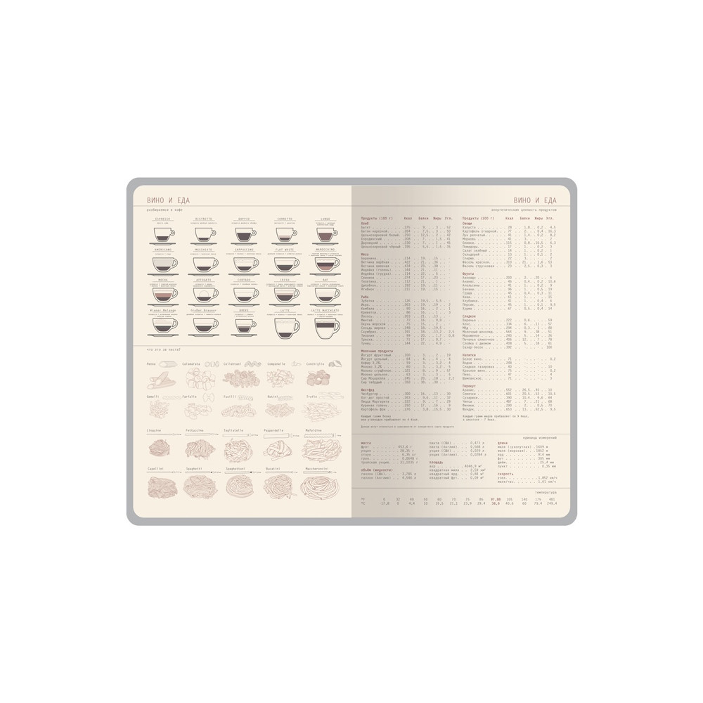 Ежедневник формата А5 имеет внутренний блок из 272 страниц. Блок изготовлен из бежевой бумаги плотностью 70 г/м2 и содержит: