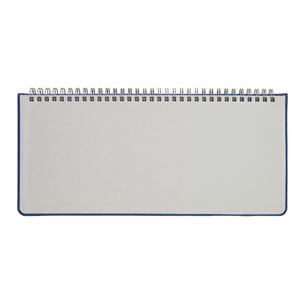 Цвет обложки, близкий к пантону 7686C Размер 140*300 мм Переплет твердый, на металлической спирали, прошивка по периметру верхней обложки Обложка PU Velvet Блок недатированный, в линейку, прямые углы Бумага белая, плотность 70 г м2 Форзац нахзац серые 128 страниц Упаковка крафтовый сливбоксВ данный момент происходит смена справочной части блока. Внешний вид изделия остается без изменений.