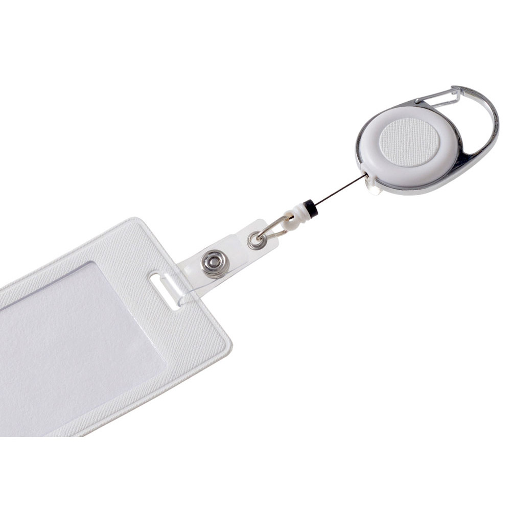 Прочный чехол для пропуска из экокожи с ретрактором. Ретрактор можно удобно закрепить на одежде, за ремень или карман брюк, например. При этом, когда пропуск нужно приложить к электронному считывающему устройству, достаточно просто слегка потянуть и будет получена необходимая длина.