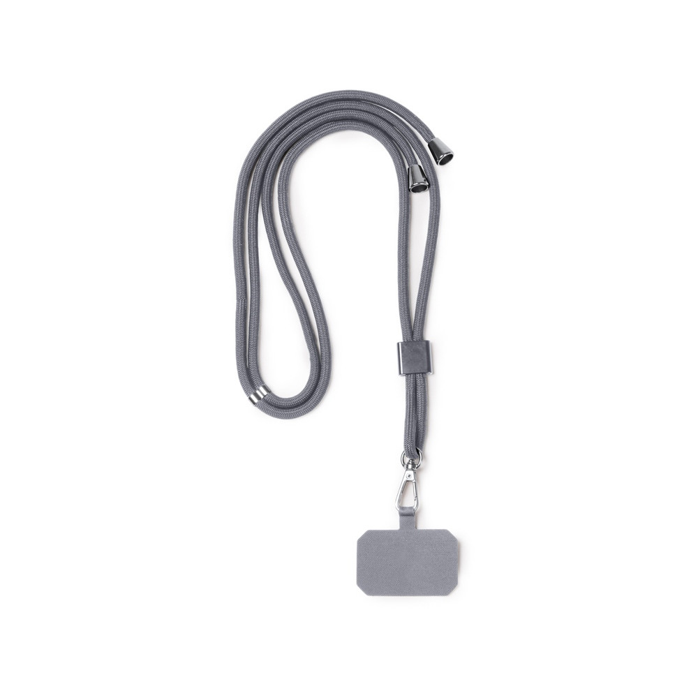 Держатель для мобильного телефона на шнурке из переработанного полиэстера RPET. Регулируемый ремешок, в комплект входит карабин.