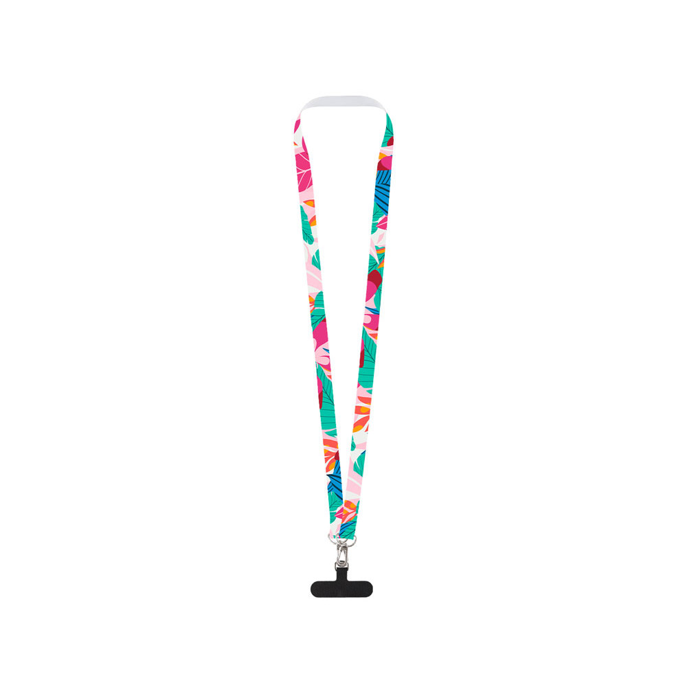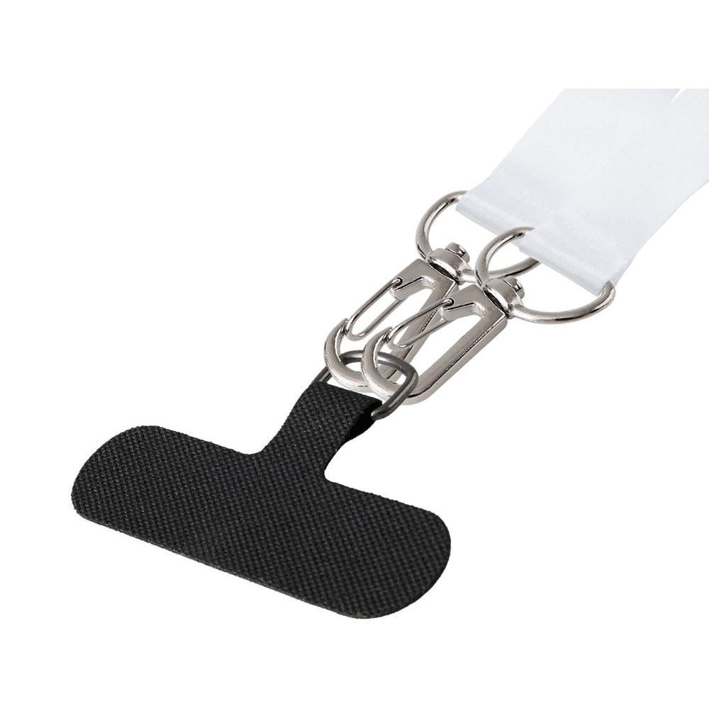 Ланъярд 2 см под сублимацию с 2-мя трендовыми карабинами и узким держателем для телефона из ПЭ, серебристый
