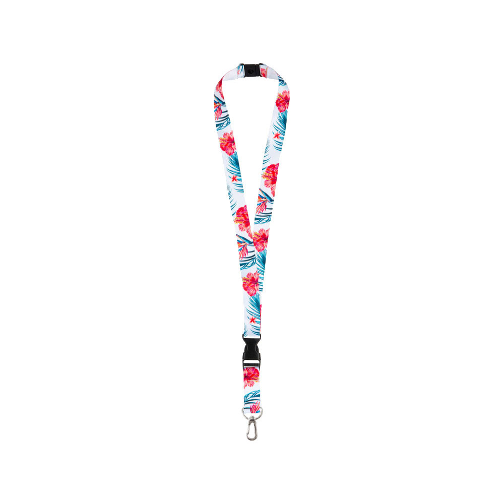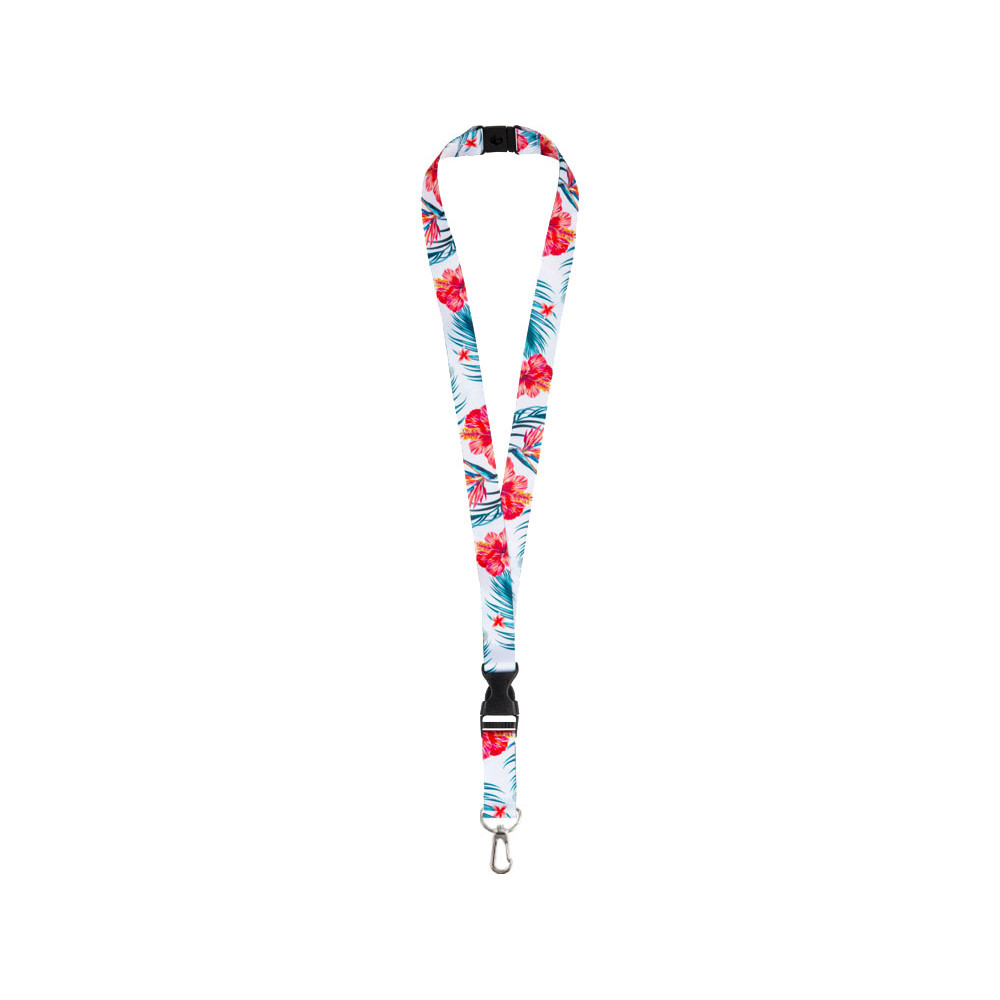 Ланъярд 2 см под сублимацию с карабином, межуровневым замком и замком обрыва, серебристый