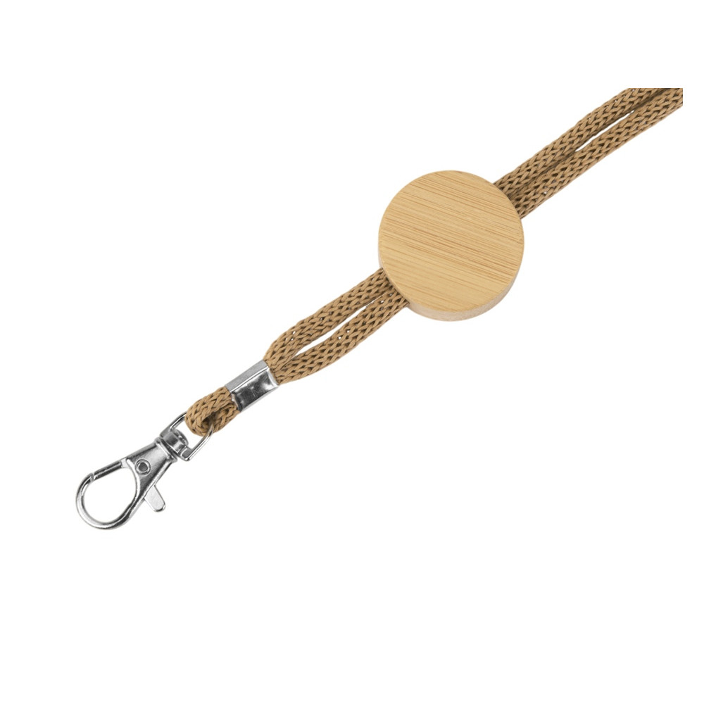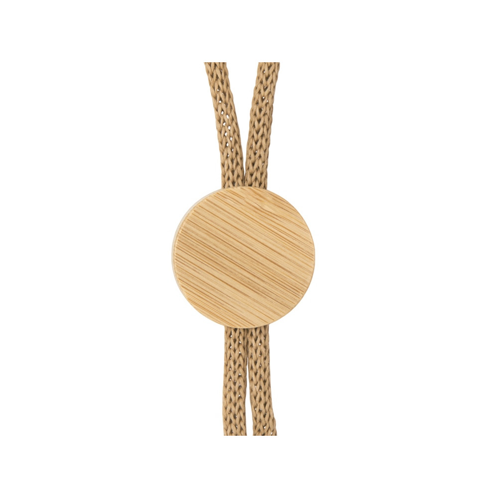 Шнурок изготовлен из переработанной бумаги и дополнен бамбуковой плашкой, на которую можно нанести логотип.
