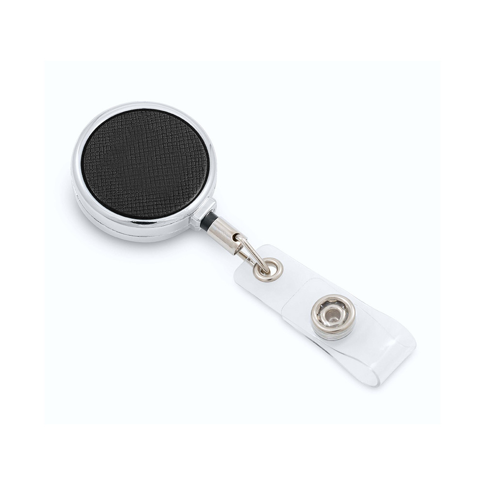 Металлический ретрактор с вставкой из экокожи станет частью запоминающегося и полезного бизнес-подарка, особенно в сочетании с карманом для бейджей из такого же материала.