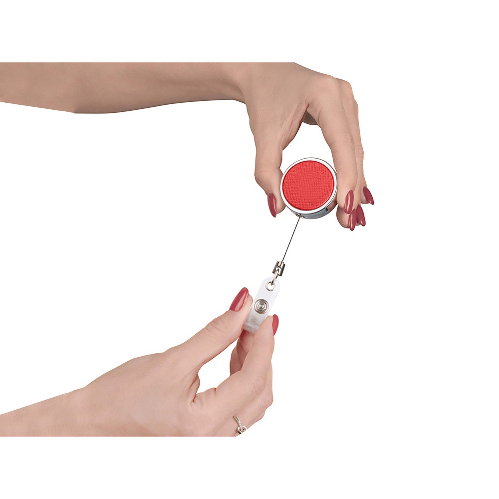 Основное преимущество заключается в том, что он не запутается и отлично подойдёт людям, которые не любят ничего носить на шее. Его можно удобно закрепить на одежде, за ремень или карман брюк, например. При этом, когда пропуск нужно приложить к электронному считывающему устройству, достаточно просто слегка потянуть и будет получена необходимая длина.