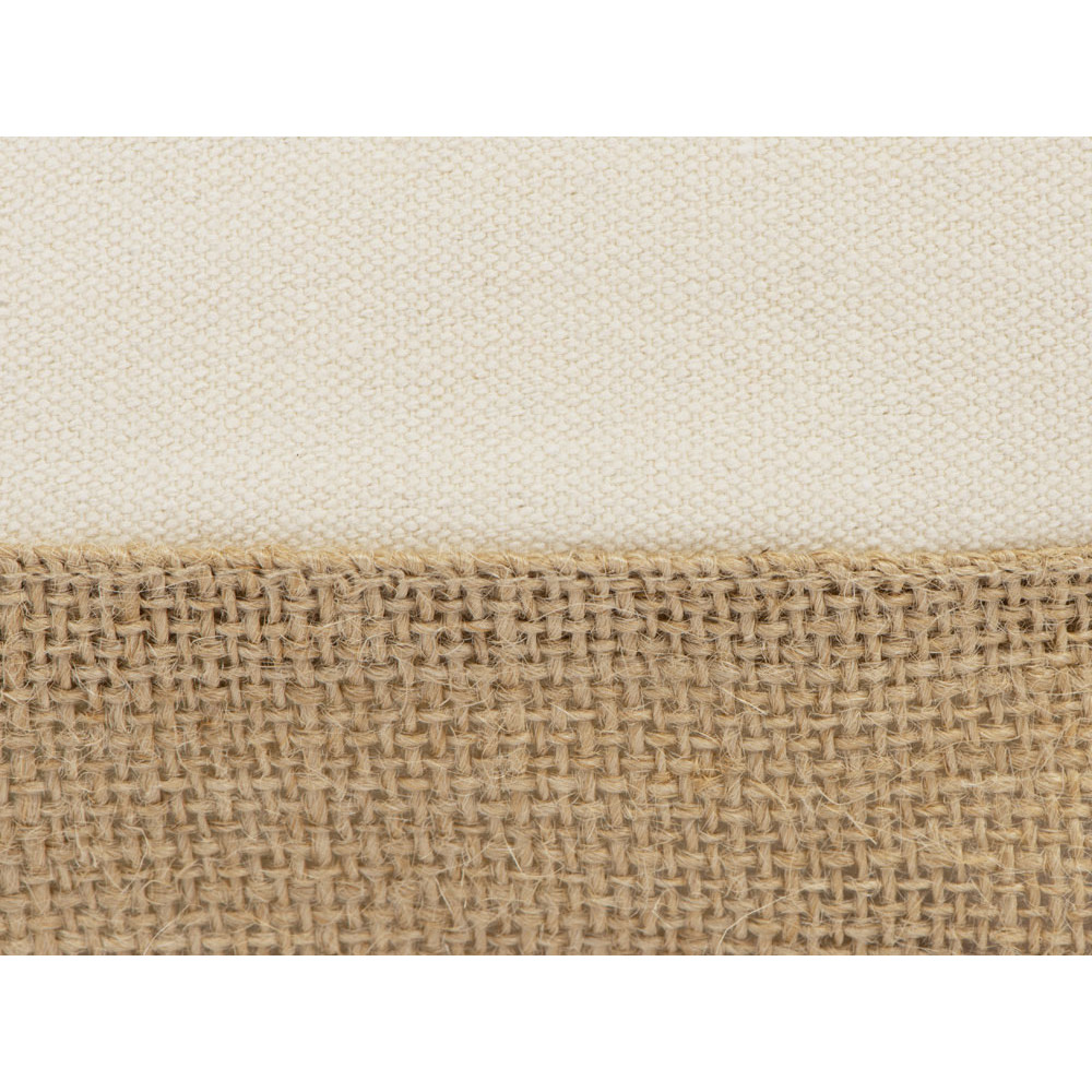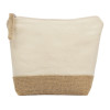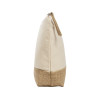 Вместительная косметичка, визуально разделенная на две части в оттенках небеленой ткани. Нижняя часть косметички выполнена из джута, верхняя – из хлопка. Материал подкладки – полиэстер. Минимальное использование синтетических тканей, экологичный продукт.