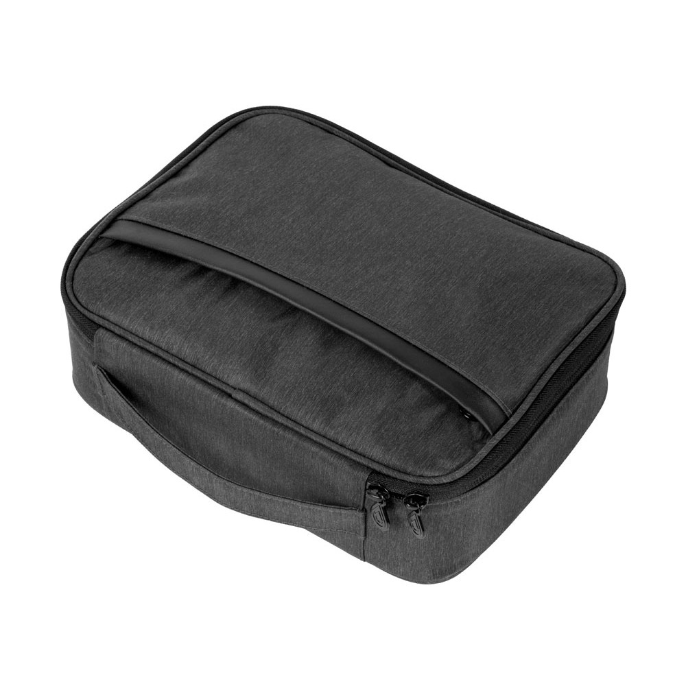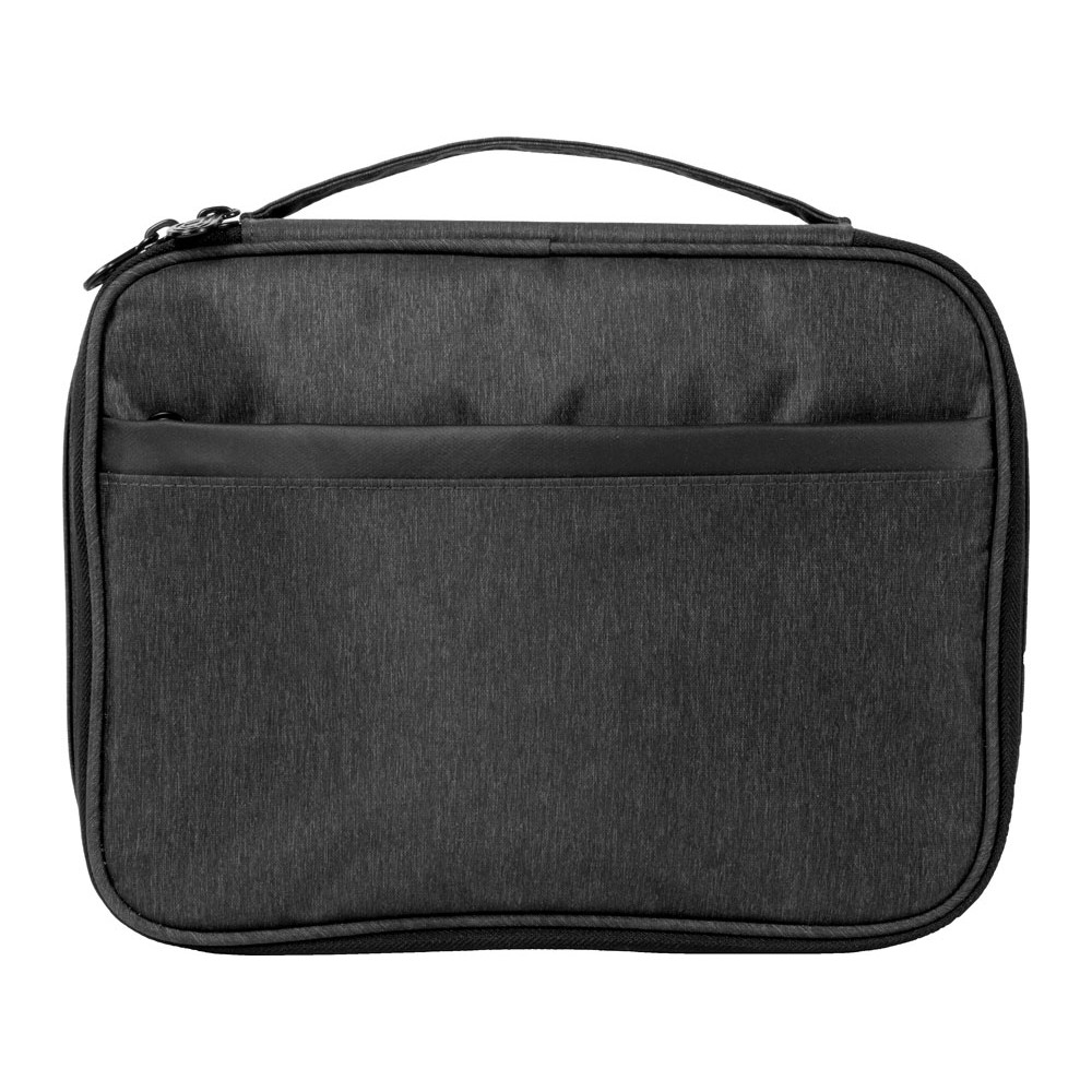 С внешней стороны органайзера есть дополнительный карман на молнии и удобная ручка для переноски.