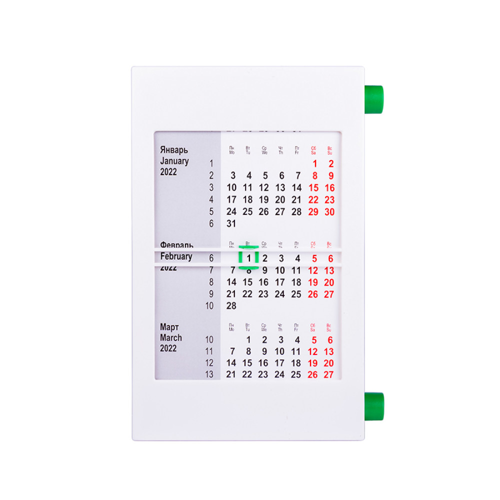Календарная сетка на 2026 - 2027 г. Цвет близкий к Pantone 348C.