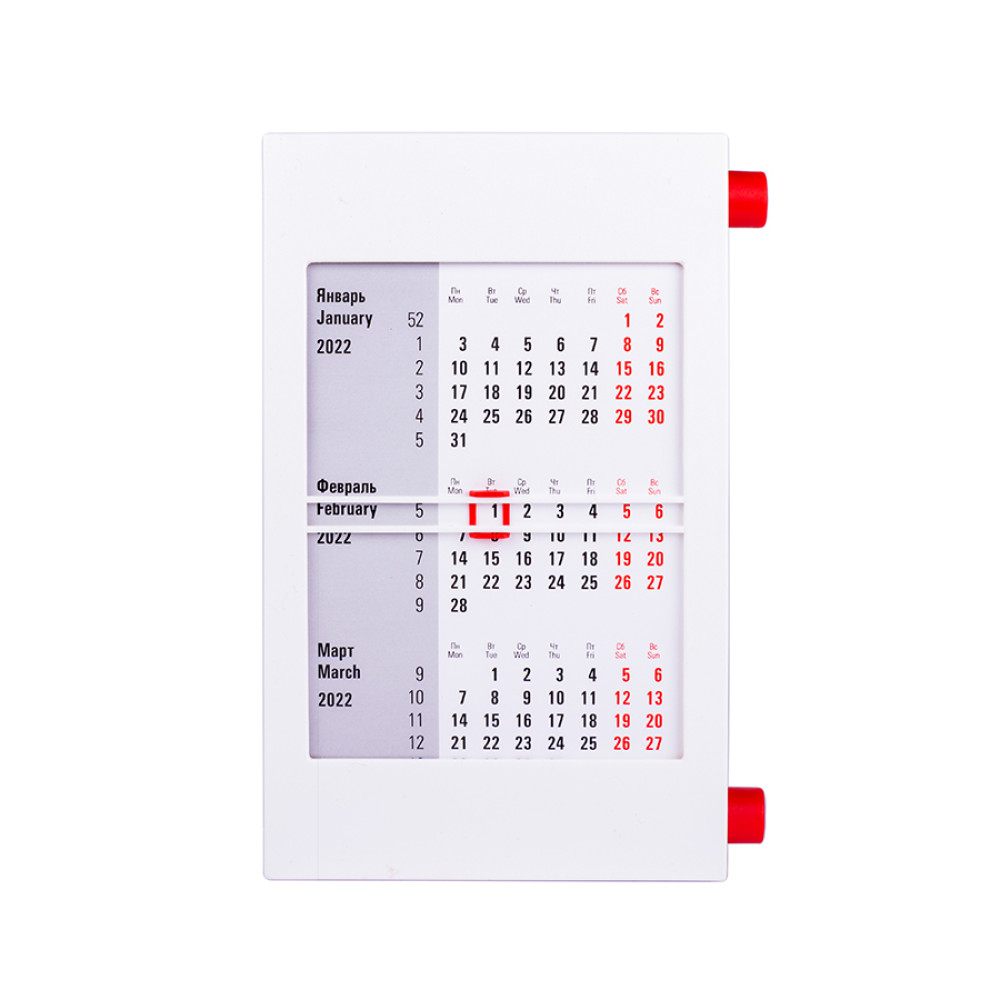 Календарная сетка на 2026 - 2027 г. Цвет близкий к Pantone 1805C.