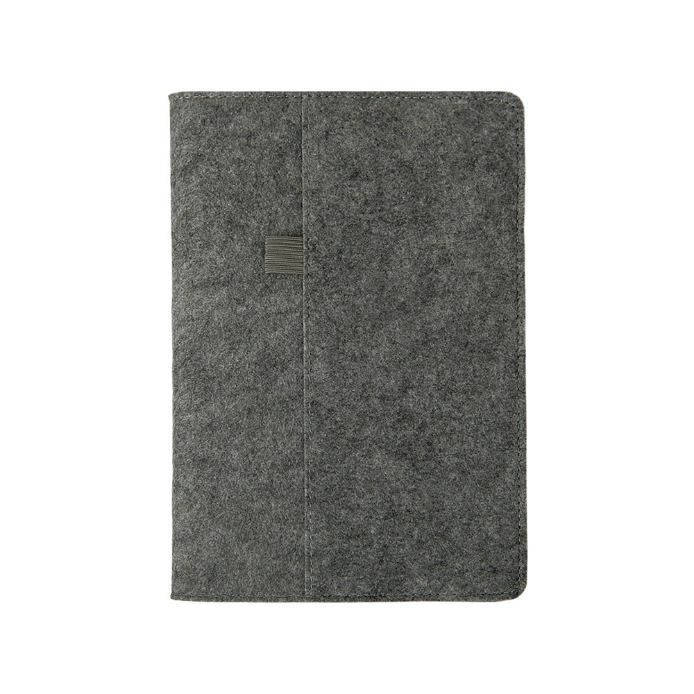 Это портфолио адаптируется под ваш стиль и настроение. Одна сторона — серая экокожа, другая — уютный фетр из переработанных материалов. С обеих сторон вы найдёте карманы для мелочей и петли для резинки. Внутри — сменный блок из 80 листов кремовой бумаги с ляссе, что делает его удобным и практичным.