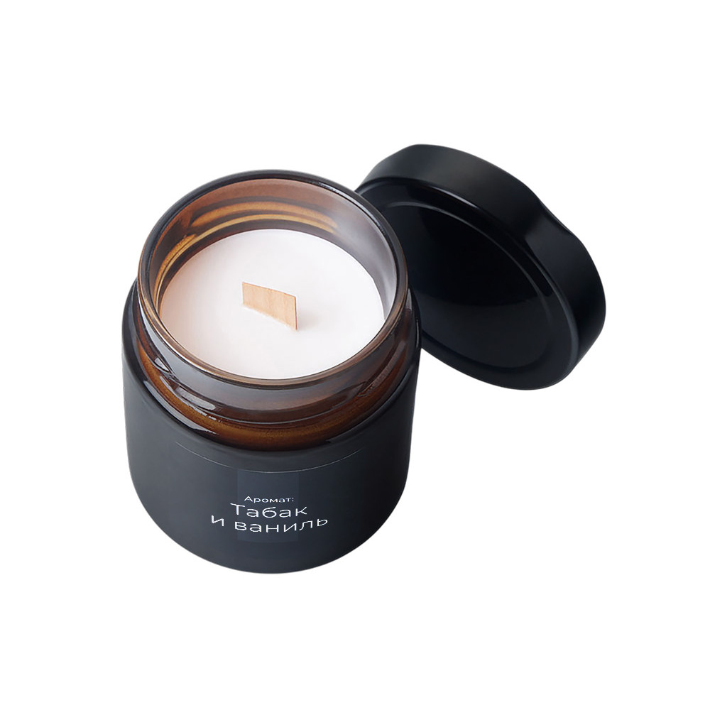 Свеча в стеклянной коричневой банке 200мл, аромат Табак и ваниль, фитиль деревянный