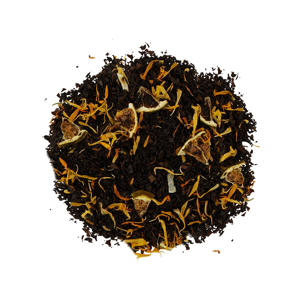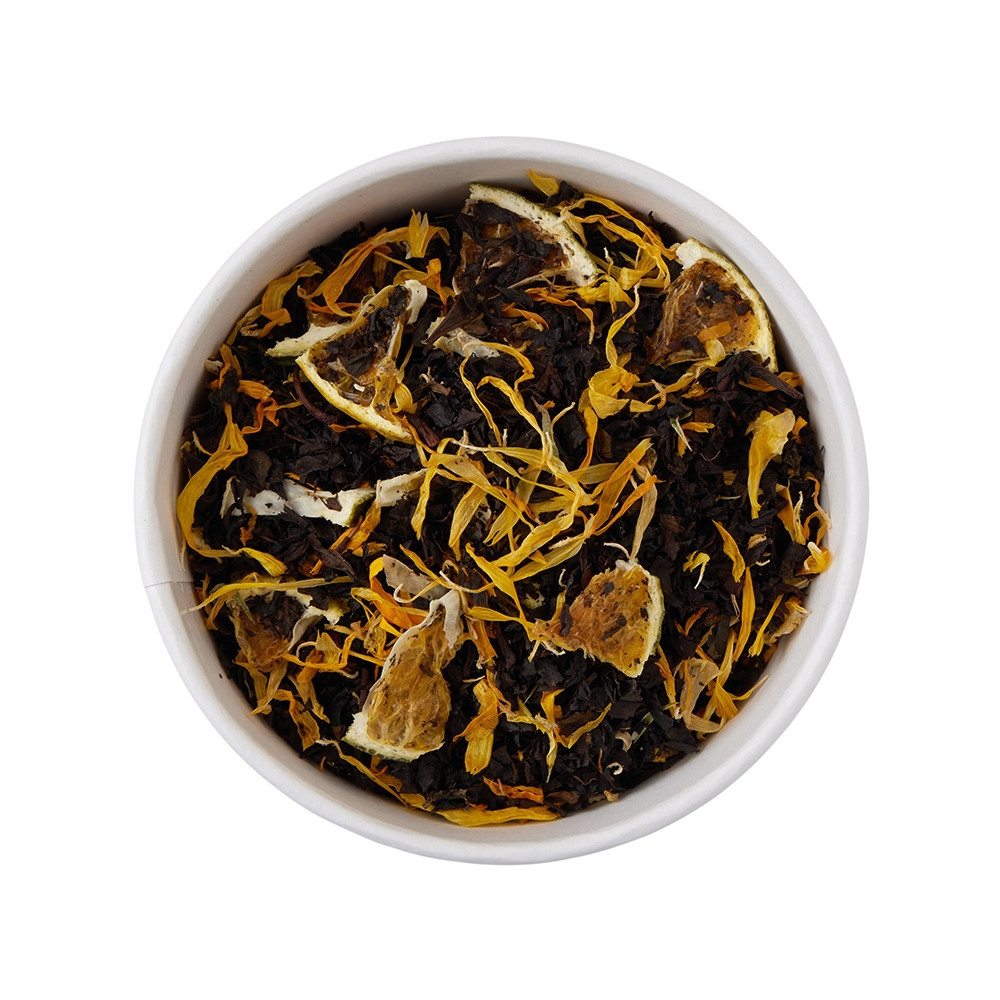 | Состав | черный чай, лепестки календулы, слайсы мандарина, ароматизатор натуральный "Глинтвейн", ароматизатор натуральный "Мандарин" |