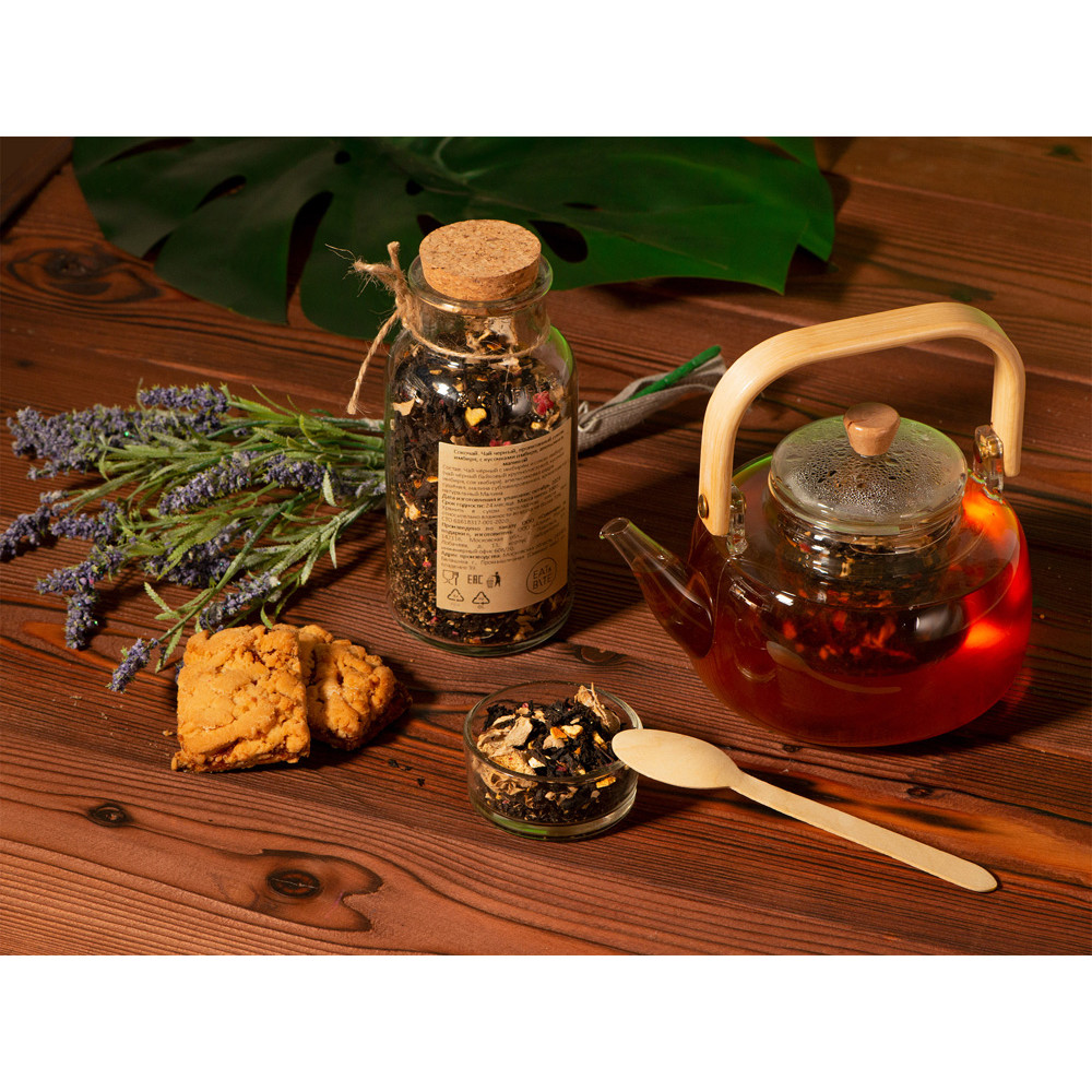 | Состав | чай чёрный байховый крупнолистовой, кусочки имбиря, сок имбиря, апельсиновая цедра сушёная, малина сублимированная, ароматизатор натуральный "Малина" |