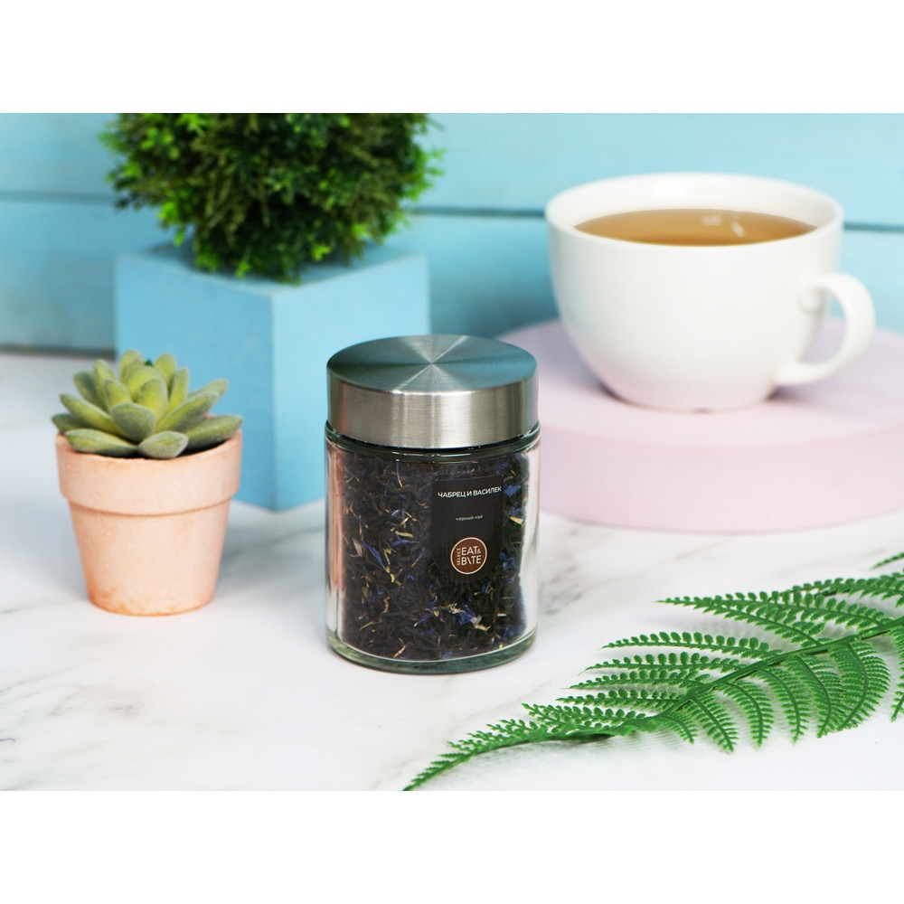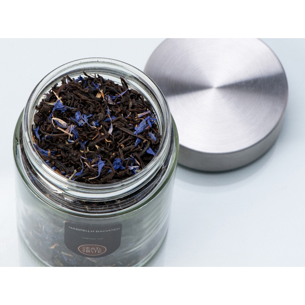 Чай черный, серия Essence, с чабрецом и лепестками василька, стеклянная банка