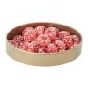 - Карамель леденцовая со вкусом малины: сахар, патока, вода, регуляторы кислотности (лимонная кислота, молочная кислота), ароматизаторы идентичные натуральным, краситель: концентрат сладкого картофеля, редиса и яблока.