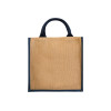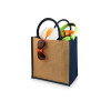 Джутовая подарочная сумка с ламинированным открытым основным отделением, которое застегивается на липучку. Хлопковые ручки высотой 11,5 см.