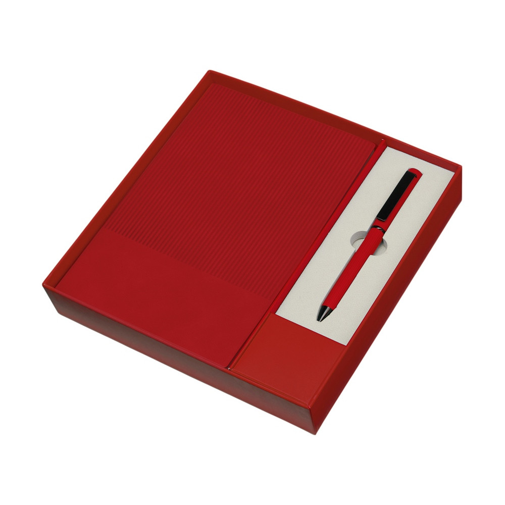 Набор блокнот в гибкой обложке А5 и металлическая шариковая ручка Nabokov, красный