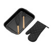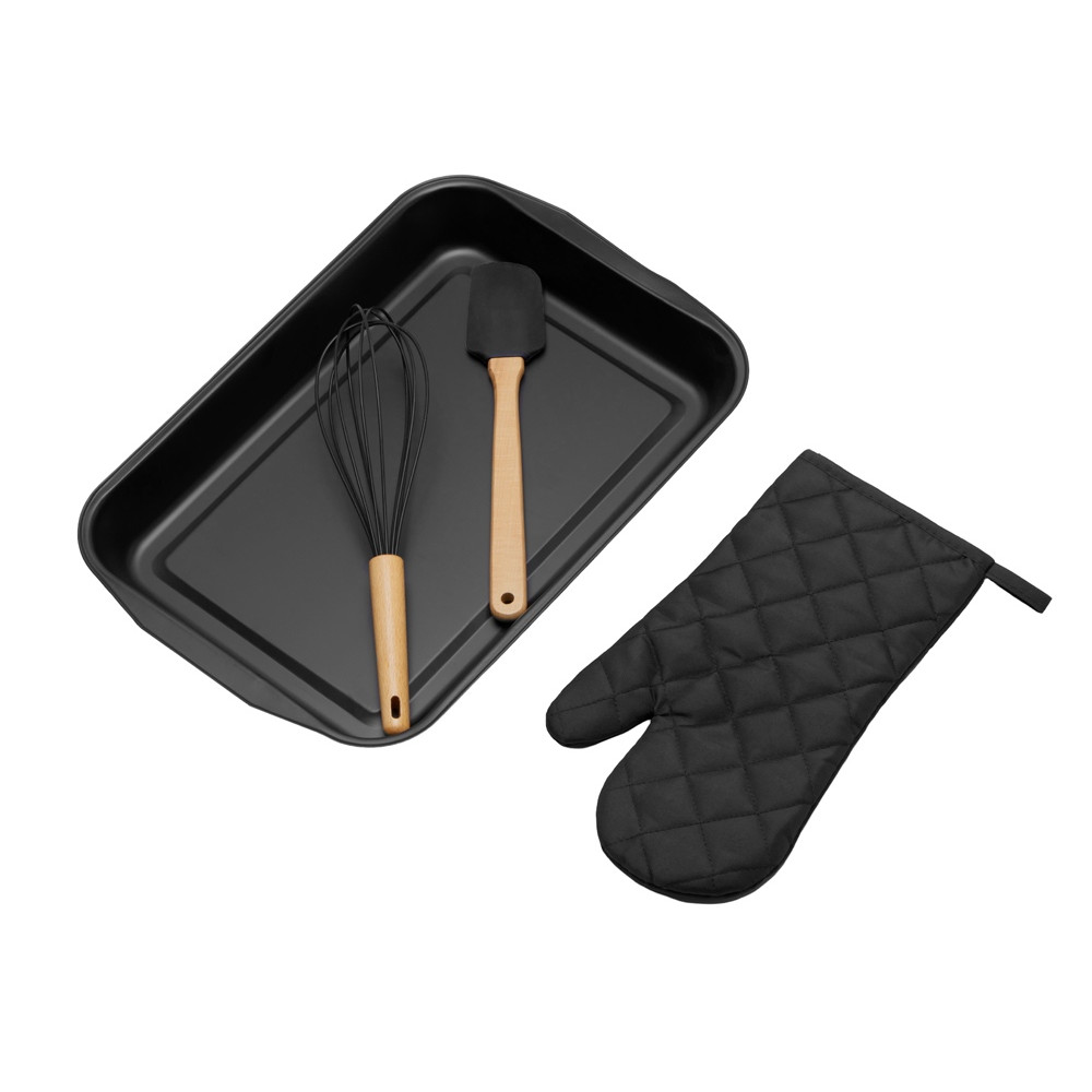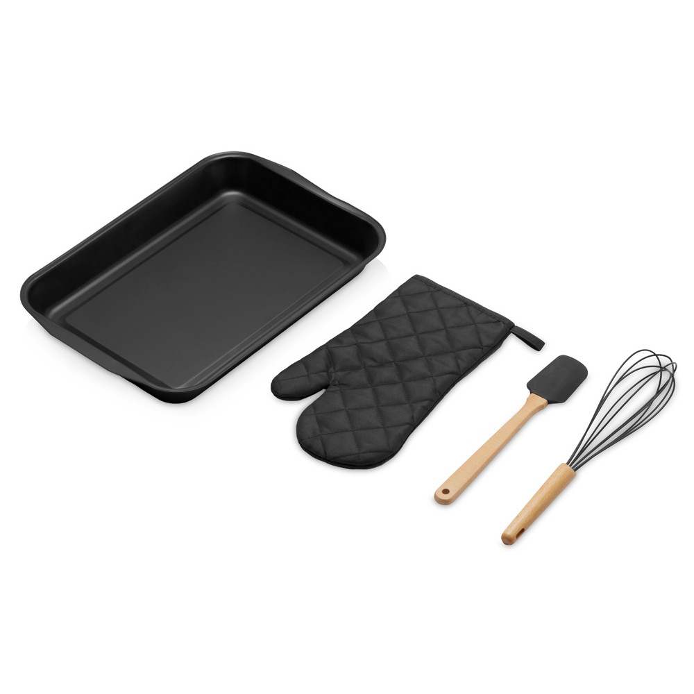 | Комплектность | противень 41 х 27,5 х 4,3 см (внутр. размер 33 х 22 см) , рукавица 16 х 29,5 см, лопатка 28 см, венчик 30 см |